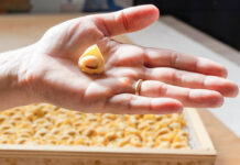 “Abbiamo conservato tutto quel che c’era, compresa la storica insegna del negozio, e abbiamo mantenuto anche gli stessi fornitori laddove era possibile. Ovviamente abbiamo ancora anche la stessa ricetta delle dodici conce per la preparazione di salsicce, cotechini e ciccioli che fu depositata tramite atto notarile negli Anni Sessanta dal signor Bertelli, che non si può né cambiare per mantenere l’integrità del prodotto, né rivelare, e che ci è valsa il conferimento del De.C.O. (Denominazione Comunale d’Origine) per il nostro cotechino crudo. Però, abbiamo anche deciso di dare il nostro tocco personale al negozio soprattutto in relazione alle esigenze dei nostri tempi. Abbiamo quindi aggiunto il reparto gastronomia con diverse preparazioni di carne pronta da cuocere, fatte tutte da noi, come involtini e tramezzini di carne, polpettoni, fettine panate e altro. Il maiale è ancora protagonista del nostro negozio, sia per quanto riguarda i salumi e gli insaccati ovviamente, che per quanto riguarda i tagli di carne, ma abbiamo introdotto anche il pollo che prima non c’era. Questi cambiamenti hanno fatto sì che la clientela si allargasse a più fasce d’età. Oltre ai clienti abituali se ne sono aggiunti altri anche giovanissimi. Il nostro target va dai 14 anni ai 90 anni e oltre. E a dopo che si è diffusa la notizia che il nostro cotechino crudo è stato insignito del De.C.O. sono arrivati tanti giovani in negozio curiosi di provarlo. Il nostro cotechino è ottenuto da un impasto di carne suina, grasso suino e cotenna macinata ed insaccato in un budello naturale, fatto stufare per 12 ore su una trave in acciaio dentro una cella a temperatura controllata di 40-60° per far si che il prodotto si asciughi perdendo circa il 40% dei grassi, e sia pronto per la vendita a crudo. Accanto al cotechino crudo anche quello cotto riscuote successo perché è più pratico e veloce da cuocere”.