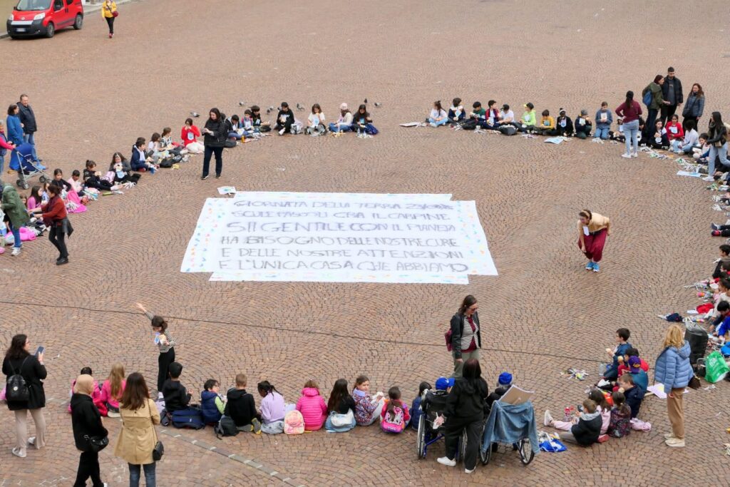 Il grande giorno è stato mercoledì 8 maggio quando, scortati dalla Polizia Locale, agitando i loro pon-pon e al ritmo delle maracas, i bambini delle Pascoli e gli anziani del Carpine hanno percorso a piedi tutta via Berengario per arrivare in Piazza Martiri e dire a tutti quanto è importante prendersi cura del nostro pianeta. Nemmeno troppo intimoriti, hanno preso la parola per esprimere le loro considerazioni e poi hanno lasciato le loro impronte sul grande striscione collocato al centro del girotondo nel quale si legge: sii gentile con il pianeta, ha bisogno delle nostre cure e delle nostre attenzioni. È l’unica casa che abbiamo