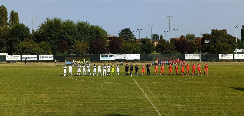 Occorrono sette minuti per la prima emozione della gara, col tentativo di Hoxha che termina di poco a lato. Al quarto d’ora si fa vedere lo United con Garlappi, che raccoglie una respinta ma di testa indirizza fuori. Poi al minuto 17′ gli orange passano in vantaggio: contropiede portato avanti da Corbelli, palla a destra per Hoxha che incrocia e fa 0-1. Poco prima della mezz’ora la Mutina raddoppia: cross col contagiri di Hoxha depositato in porta dal tocco sottoporta di Caselli. Tra i blucelesti uno dei più propositivi è l’ex Montorsi, che prima impegna Chiossi su punizione, poi pizzica la traversa con un tiro da fuori di mancino. Al 39′ gli ospiti trovano il terzo gol, con Ricaldone che da situazione d’angolo buca la difesa carpigiana. Pochi minuti prima dell’intervallo ci prova anche Corbelli, ma Barilli disinnesca la conclusione del centravanti modenese.