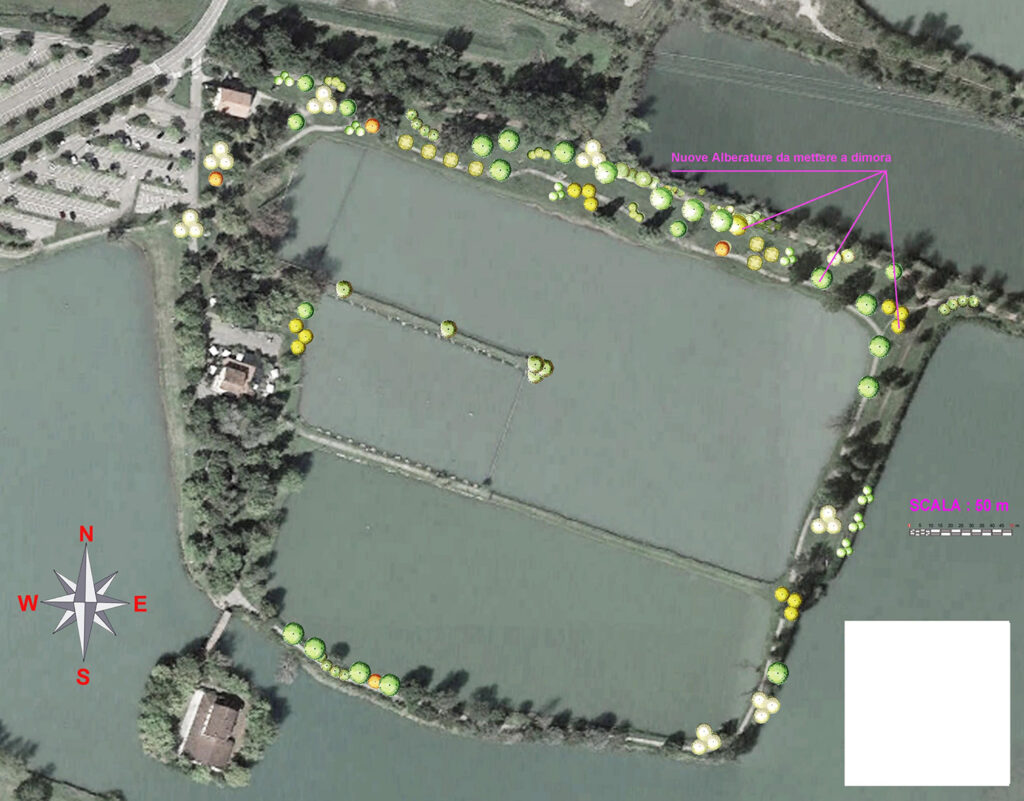 La selezione delle alberature è stata affidata a un agronomo esperto, che ha scelto specie ripariali, particolarmente adatte agli ambienti caratterizzati da fluttuazioni del livello dell’acqua. Queste piante (ad es. Acero campestre, Ontano nero, Frassino maggiore), capaci di resistere a periodi di allagamento e di prosperare in condizioni di elevata umidità, giocheranno un ruolo cruciale nel rafforzare la resilienza dell’area di fronte agli effetti dei cambiamenti climatici.