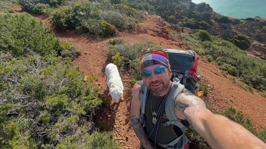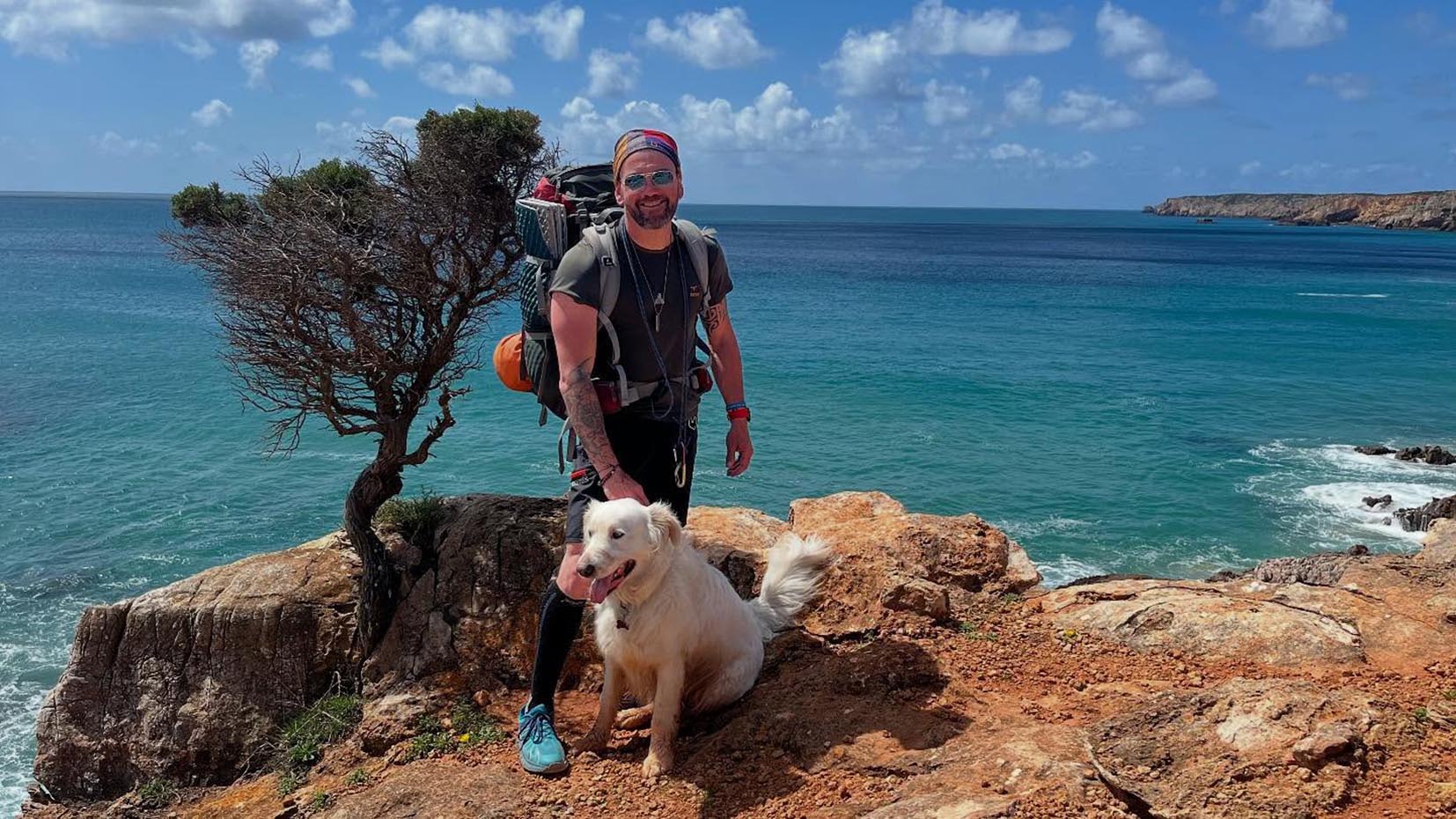 Fermo non ci sa stare e dunque, zaino in spalla, il correggese Renato Frignani, si è rimesso in cammino col fido Pulce – il pastore maremmano trovato ancora cucciolo il 9 giugno del 2019 tra i sacchetti dell’immondizia – sulle orme di uno degli itinerari escursionistici più suggestivi d’Europa, il Cammino dei Pescatori. 220 chilometri di stupefacente bellezza affacciati sull’oceano. Il tracciato, così denominato in onore dei pescatori che lo percorrevano alla ricerca dei luoghi migliori per pescare, completa, insieme al Camino Historico, la Rota Vicentina. “Siamo partiti da Lagos, nell’Algarve Portoghese, e proseguiremo il nostro viaggio lungo la Rota Vicentina fino a Sines per poi collegarci al Camino Centrale Portoghese fino a Santiago de Compostela” ci racconta Renato durante una pausa. Dopo tante avventure in giro per il mondo, a piedi e in bicicletta, Renato ha trascorso gli ultimi cinque anni tra le montagne del Trentino Alto Adige, in Valsugana: “ho fatto prima il giardiniere e poi il portalettere, un lavoro pazzesco nelle valli intorno a San Martino di Castrozza. Un’esperienza bellissima, tra malghe e paesini, che mi ha permesso di vivere all’aria aperta e di incontrare tante persone. Integrarmi però è stato molto faticoso. Dopo cinque anni mi sono reso conto che non si vive solo di bellezza. Mi mancavano la mentalità e l’approccio aperto alla vita tipici della pianura e così sono sceso nuovamente verso Carpi e Correggio. A casa insomma e mi sono sentito rinascere”.