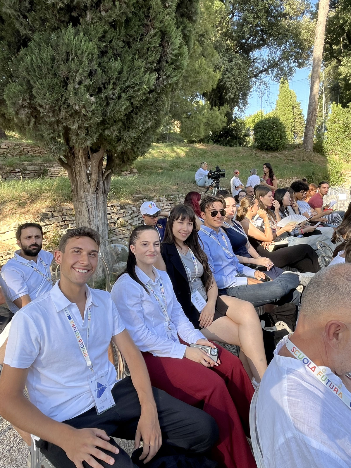 La seconda delegazione del nostro liceo ha invece seguito l’intera manifestazione dall’interno del Media Lab, allestito presso i Musei Civici di Pesaro, contribuendo alla copertura mediatica ufficiale dell’evento. I nostri studenti si sono trasformati in giovani reporter: hanno scritto articoli, condotto interviste e realizzato contenuti digitali per i canali social del Ministero dell’Istruzione, documentando in tempo reale laboratori, eventi e momenti salienti della manifestazione, tra cui l’inaugurazione del campus Futura in Piazza del Popolo il 4 luglio e la chiusura ufficiale a Villa Caprile il 7 luglio con la partecipazione del Ministro dell’Istruzione Giuseppe Valditara. Abbiamo invitato e coinvolto anche una delegazione dell’IIS ‘Ferrari’ di Maranello (nel parco del Motori, con simulazioni di guida di auto e moto) e il gruppo dell’ITIS Da Vinci di Carpi con il loro prototipo ‘Escorpio’, auto a idrogeno che da anni partecipa all’Eco Marathon.