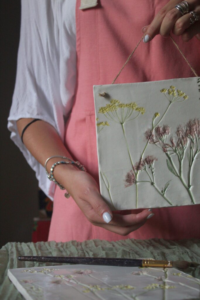 “Nella primavera del 2024 ho creato la pagina Instagram di ceramica in fiore. Mi piace pensare che grazie alla ceramica la natura abbia la possibilità di lasciare indelebili impronte, che in quanto tali sono uniche. Infatti, imprimo fiori di stagione e foglie sull’argilla con un mattarello e li rimuovo subito dopo. Poi devono asciugare per giorni, dopodiché li coloro e infine vanno cotti”.