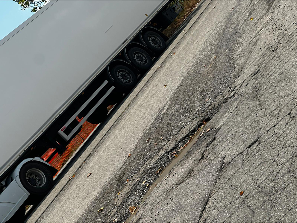 Un colabrodo. Non c’è altro modo per definire il manto stradale della zona autotrasportatori di Fossoli. Particolarmente grave la situazione in Via dei Trasporti all’incrocio con la Statale Romana Nord.