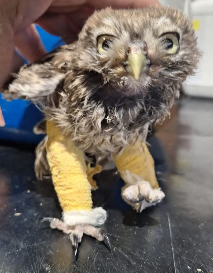 A giorni le verranno tolte le stecche dalle zampe e se le fratture si saranno saldate per la civettina inizierà la riabilitazione!