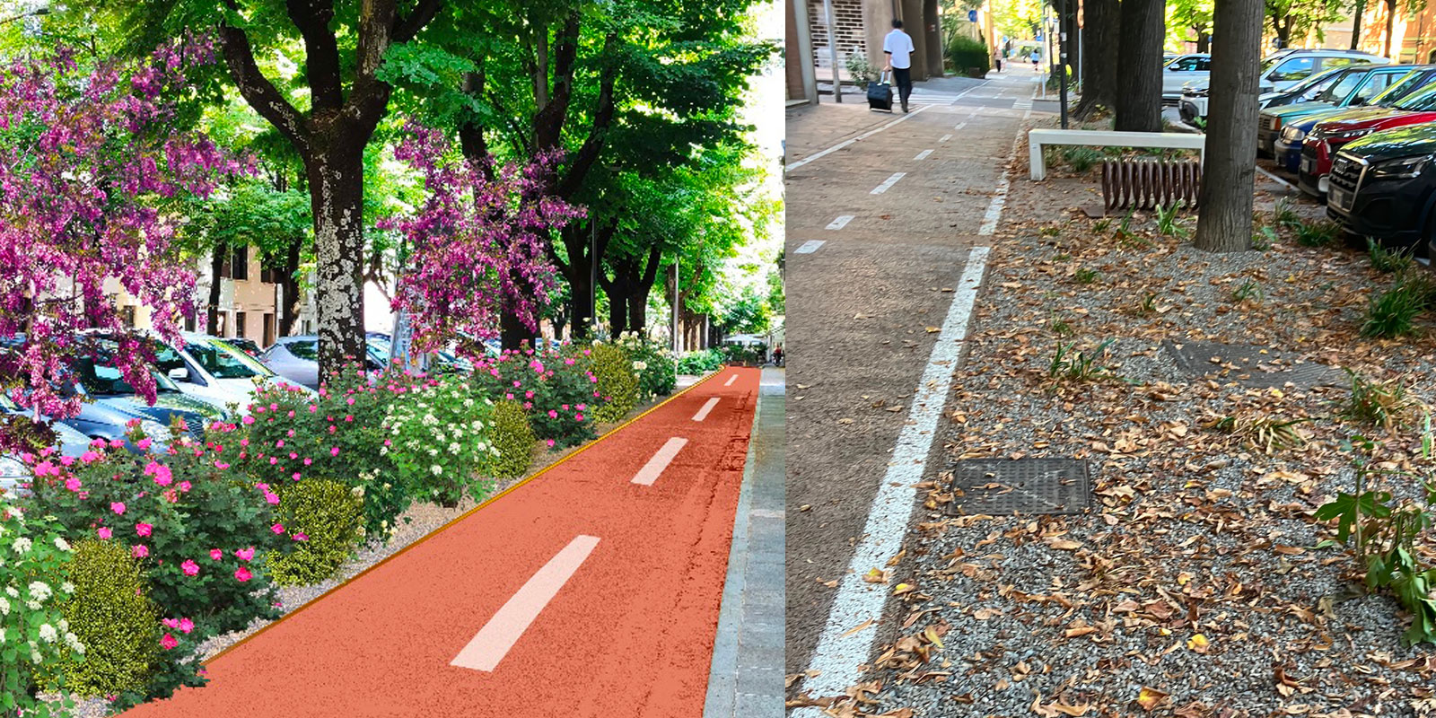 L’asfalto è stato rimosso e il suolo ‘desigillato’, ma viale Carducci non ha cambiato colore perché le ‘molteplici essenze che fioriscono in periodi diversi dell’anno’ sono rimaste nelle immagini delle simulazioni. “In tante città ci sono aiuole con fiori colorati ad abbellire i centri storici e anche noi residenti di viale Carducci ci speravamo. La ghiaia ha sicuramente bisogno di meno cure ma il risultato estetico non è certo dei migliori. Un invito a nozze per i padroni dei cani”.