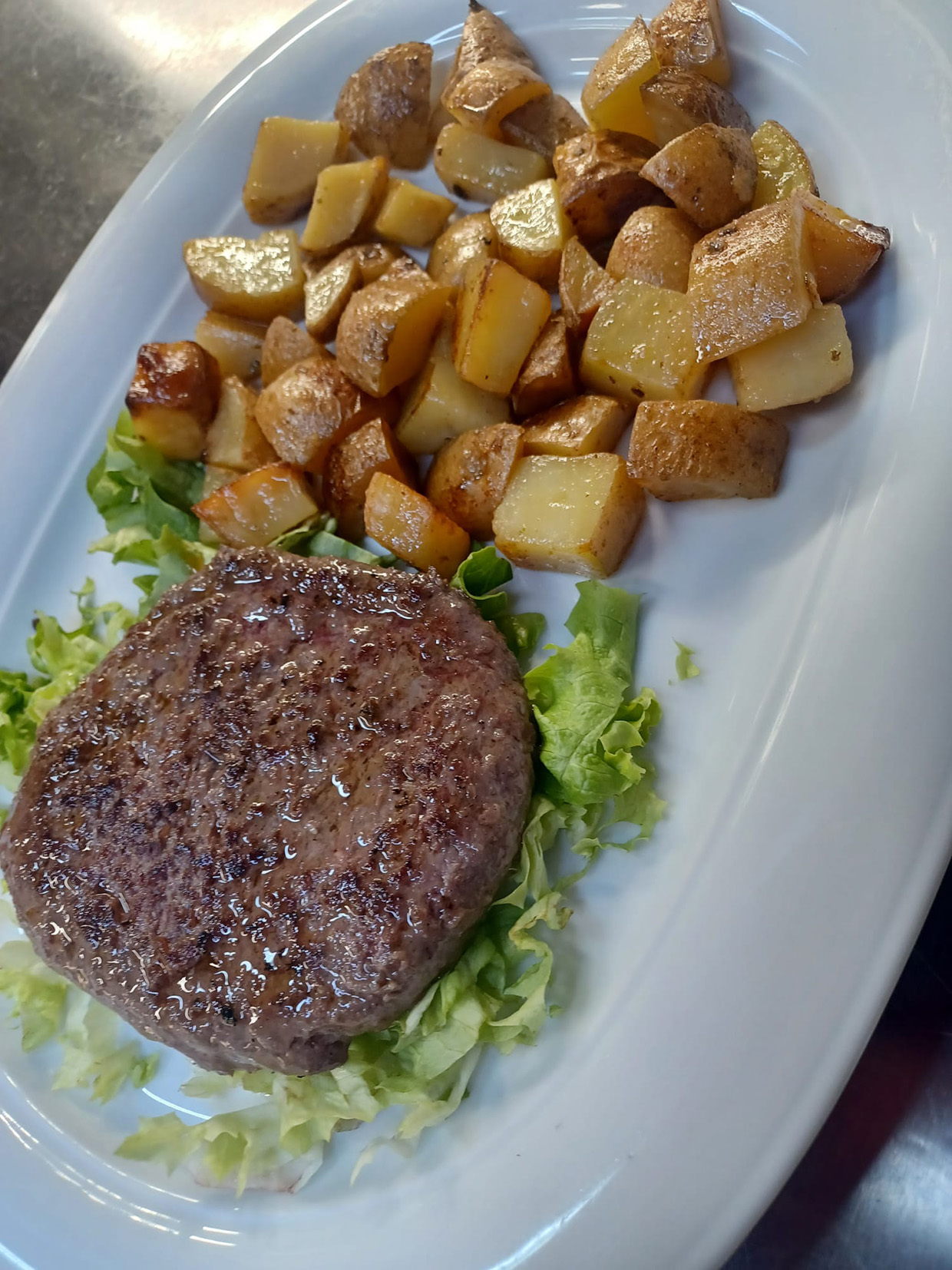 Abbiamo scelto quattro tagli da proporre al ristorante: Hamburger, Salsiccia, Tagliata e Filetto. Hamburger, salsiccia e tagliata li puoi scegliere singoli o in gran grigliata per un bel secondo da circa 550 grammi da condividere con gli altri commensali. Il filetto da 300 grammi è pensato per due, anche se non mancano gli estimatori che lo prendono da soli. Abbiamo scelto questa pezzatura per far sì che il costo del piatto non fosse esorbitante se servito a singola porzione. Oltre al secondo c’è anche una bella tagliatella al ragù bianco di bufalo, ma non ditelo troppo in giro che poi rimanete senza!