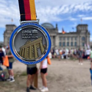 Nonostante un’infiammazione alla caviglia nelle ultime settimane, Fabio ha stretto i denti e non si è arreso. Con determinazione e cuore, è passato sotto la storica Porta di Brandeburgo e ha fermato il cronometro sul tempo di 3h58’30”.