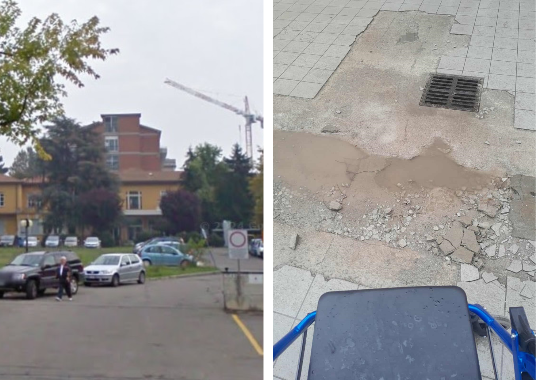 Nella zona dell’ospedale a cui si accede dal parcheggio di Piazzale Donatori di Sangue il percorso pedonale è dissestato. La segnalazione della lettrice di Tempo riguarda il tratto tra la palazzina gialla e l’ingresso dei Poliambulatori 1, in particolare l’area prospiciente la palazzina gialla. “All’uscita con la carrozzina non si riesce a procedere e chi è a piedi rischia di cadere. Ormai la situazione è così da un anno. Io spero che si possa intervenire per sistemare la pavimentazione perché sono in grande difficoltà. Grazie”.