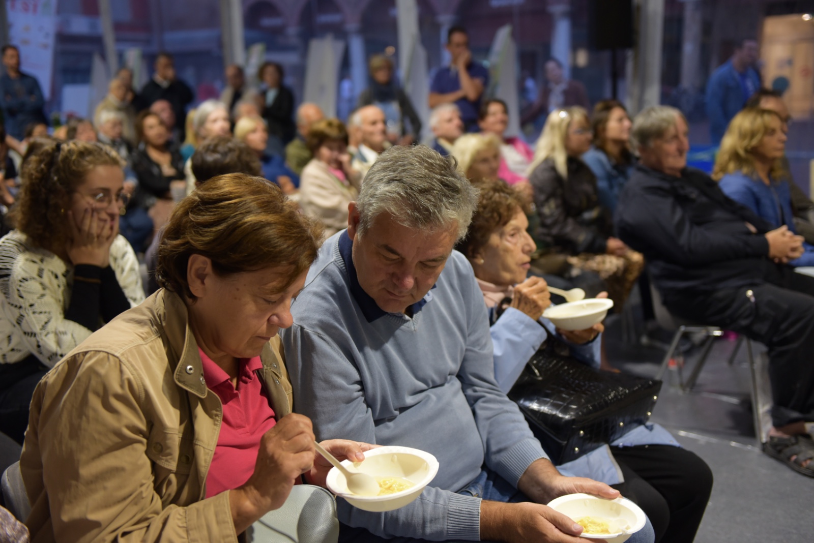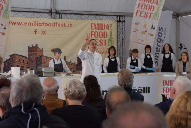Da Mattia Trabatti, neostellato chef del ristorante Alto di Fiorano Modenese premiato per aver conquistato la sua prima ambitissima stella, al celebre volto di E’ Sempre Mezzogiorno Daniele Persegani, che ha omaggiato il territorio emiliano, di cui è originario, presentando un piatto della tradizione da lui reinterpretato. Ospite d’eccezione anche Giancarlo Tavani, che dalla trattoria I Due Platani di Coloreto di cui è patron ha portato ad EmiliaFoodFest i suoi pluripremiati tortelli alle erbette. Altra stella nel firmamento del festival è stata la presenza dello chef Luca Marchini, che ha unito tradizione asiatica con i sapori della nostra tradizione, presentando un pane di ispirazione orientale con un emilianissimo Parmigiano Reggiano. Tantissime le eccellenze che sono state protagoniste degli appuntamenti gratuiti che si sono susseguiti da venerdì e domenica, dal gelato di Bloom al gnocco fritto del Bar Tiffany, dall’erbazzone dolce tipico di Pavullo all’aceto delle batterie comunali, oltre ad iniziative più goliardiche che hanno declinato in tono inedito i prodotti emiliano romagnoli, come la competizione del bensone, la champions league della tagliatella al ragù o la disfida del cappelletto carpigiano. Menzione d’onore per l’appuntamento che ha visto protagoniste tre delle De.Co carpigiane, presentando al pubblico della piazza di Carpi la mostarda fina, il cotechino cotto e la stria carpigiana. Non sono mancate nemmeno rassegne culturali, come la quarta edizione del premio giornalistico Sandro Bellei, il riconoscimento Emilia In The World al Maestro Carlo Guaitoli e la presentazione letteraria del libro della foodblogger Myriam Sabolla.