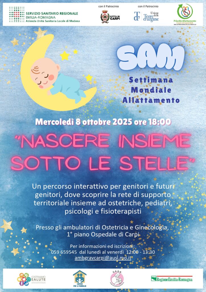 Diventare genitori è un viaggio unico, fatto di emozioni, domande e nuove scoperte. Per accompagnare le mamme e i papà di oggi e di domani lungo questo cammino, l’Azienda USL di Modena organizza l’evento “Nascere insieme sotto le stelle”, che si terrà mercoledì 8 ottobre alle ore 18 presso gli ambulatori di Ostetricia e Ginecologia, al primo piano dell’Ospedale Ramazzini di Carpi. Inserita nell’ambito del calendario della Settimana Mondiale dell’Allattamento, sarà una serata di incontro e condivisione, in cui genitori e futuri genitori potranno scoprire la rete di supporto del territorio, dialogando con ostetriche, pediatri, psicologi e fisioterapisti. Un momento per sentirsi meno soli e più forti, grazie a una comunità di professionisti pronti ad accompagnare la nascita e la crescita di ogni bambino. Per informazioni e iscrizioni telefonare al numero 059 659545 (dal lunedì al venerdì, dalle 12 alle 13.30) o inviare una email all’indirizzo ambgravcarpi@ausl.mo.it.
