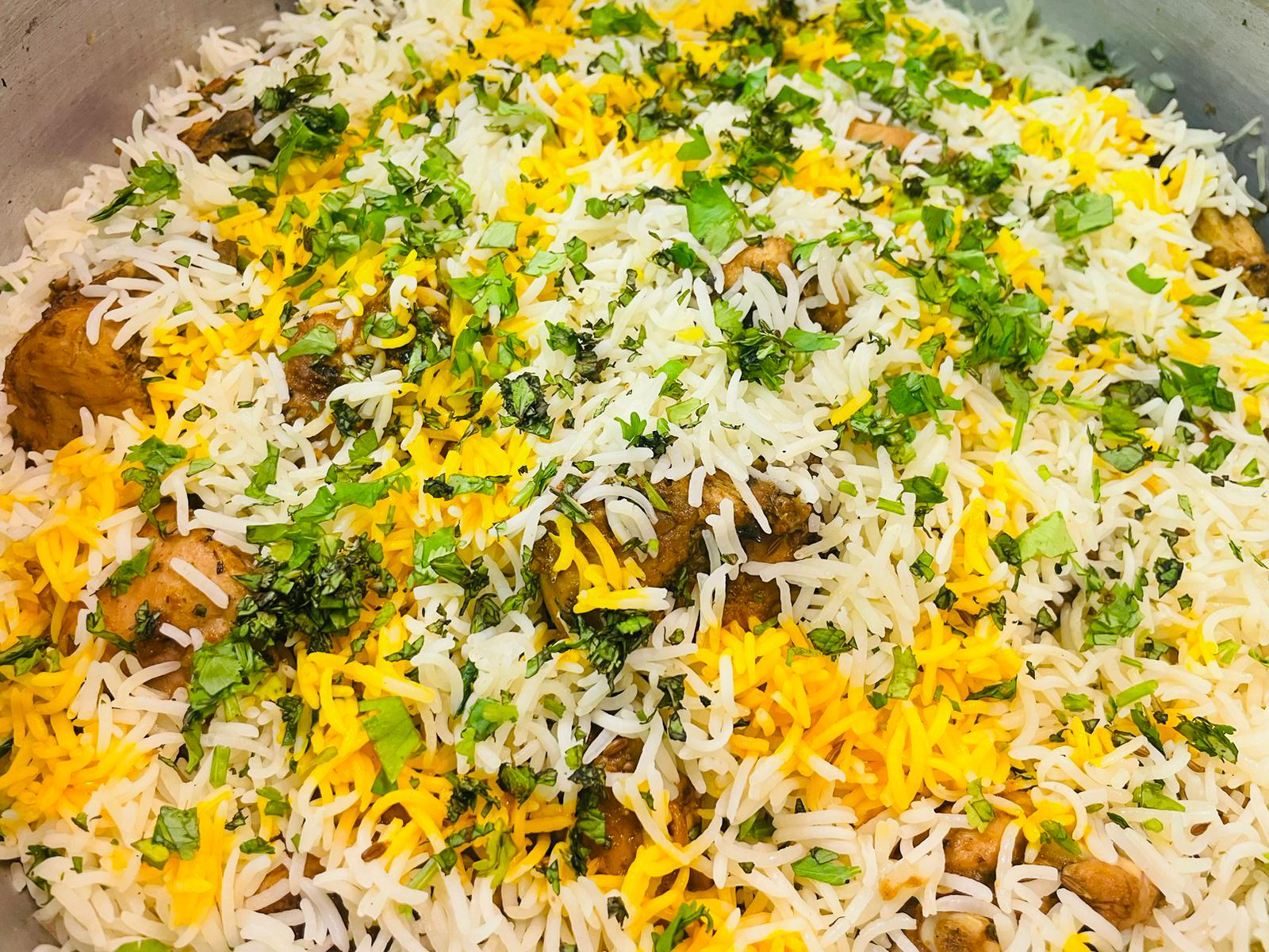 Il ricordo d’infanzia dello chef Rehan: “da piccolo quando mia madre preparava il Chicken Biryani era una grande festa. Di solito lo preparava una volta al mese alla domenica, o quando ricevevamo ospiti. Cucinarlo era un rituale e anche mangiarlo. Infatti, al contrario delle altre pietanze in cui ognuno si serviva da solo, quando c’era il Chicken Biryani era la nonna che distribuiva le porzioni, anche perché era così buono che credo che ognuno avrebbe abbondato rischiando di non lasciarne a sufficienza per gli altri! Ogni boccone di Chicken Biryani è un viaggio sensoriale che conquista il palato con la sua esplosione di sapori e profumi. La morbidezza del pollo si contrappone alla fragranza del riso, mentre le spezie scaldano il palato con un crescendo di aromi che persistono a lungo. Da noi in Pakistan ogni località ha la sua ricetta del Biryani e, spesso, ogni famiglia ha la sua. Quella che proponiamo noi è la più autentica e tradizionale”.