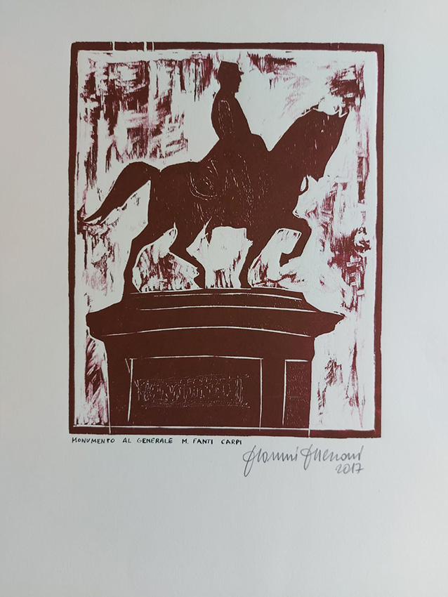 Intanto mi adopero in prima persona per la promozione della xilografia anche al di fuori del territorio carpigiano: in occasione della mostra che si tiene a fine anno nel Museo di Nonantola alla Torre dei Bolognesi, all’Open Day organizzato presso l’azienda Manitou di Castelfranco e con la Protezione Civile nell’ambito della Fiera del profumo del mosto cotto domenica 19 ottobre a Soliera.