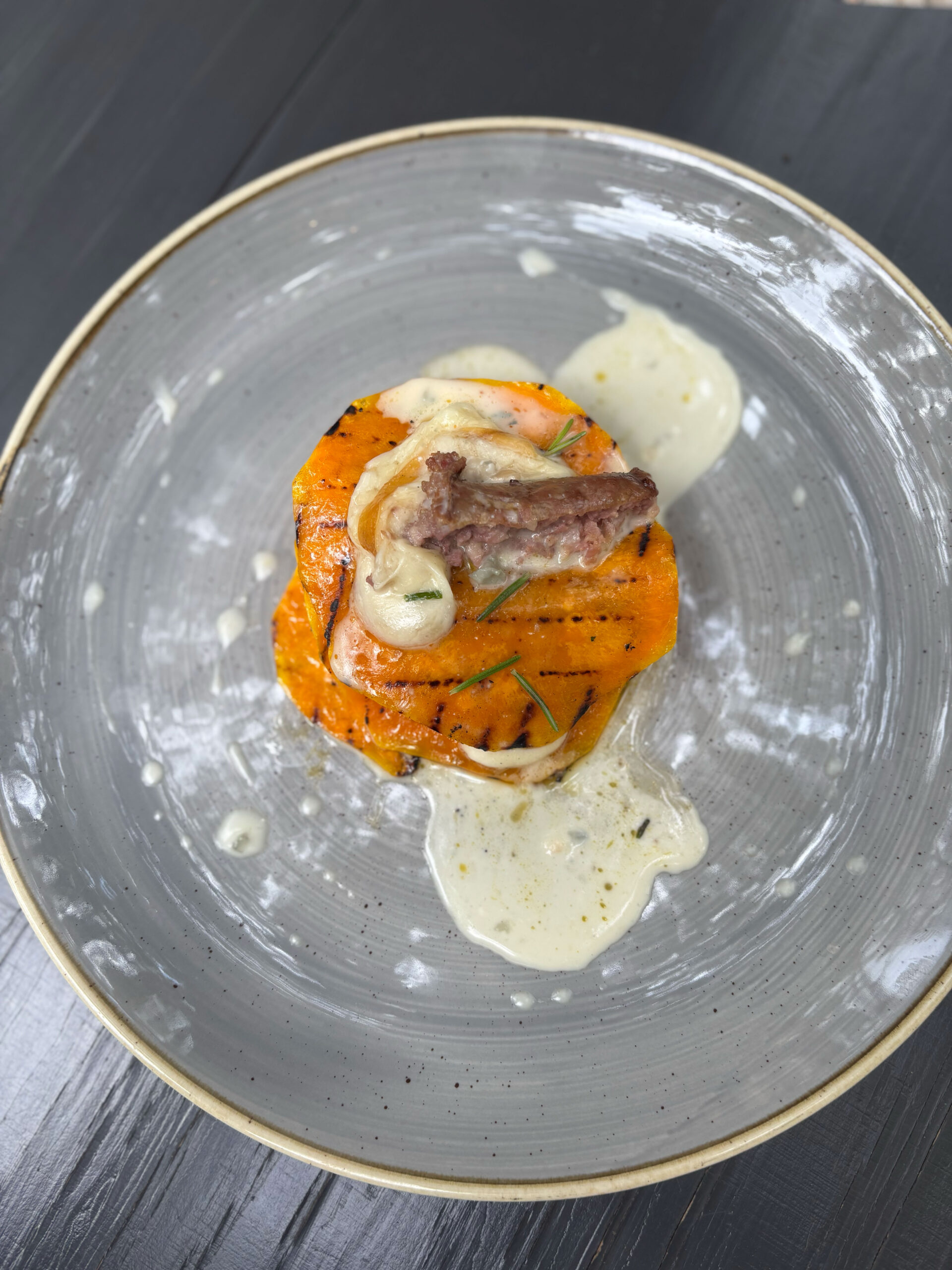 Ma tanti altri piatti come la millefoglie di zucca con scamorza, salsiccia e gorgonzola, un piatto che unisce consistenze e sapori in un perfetto equilibrio tra tradizione e creatività.