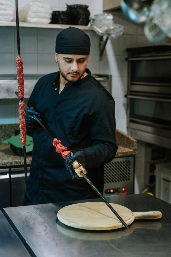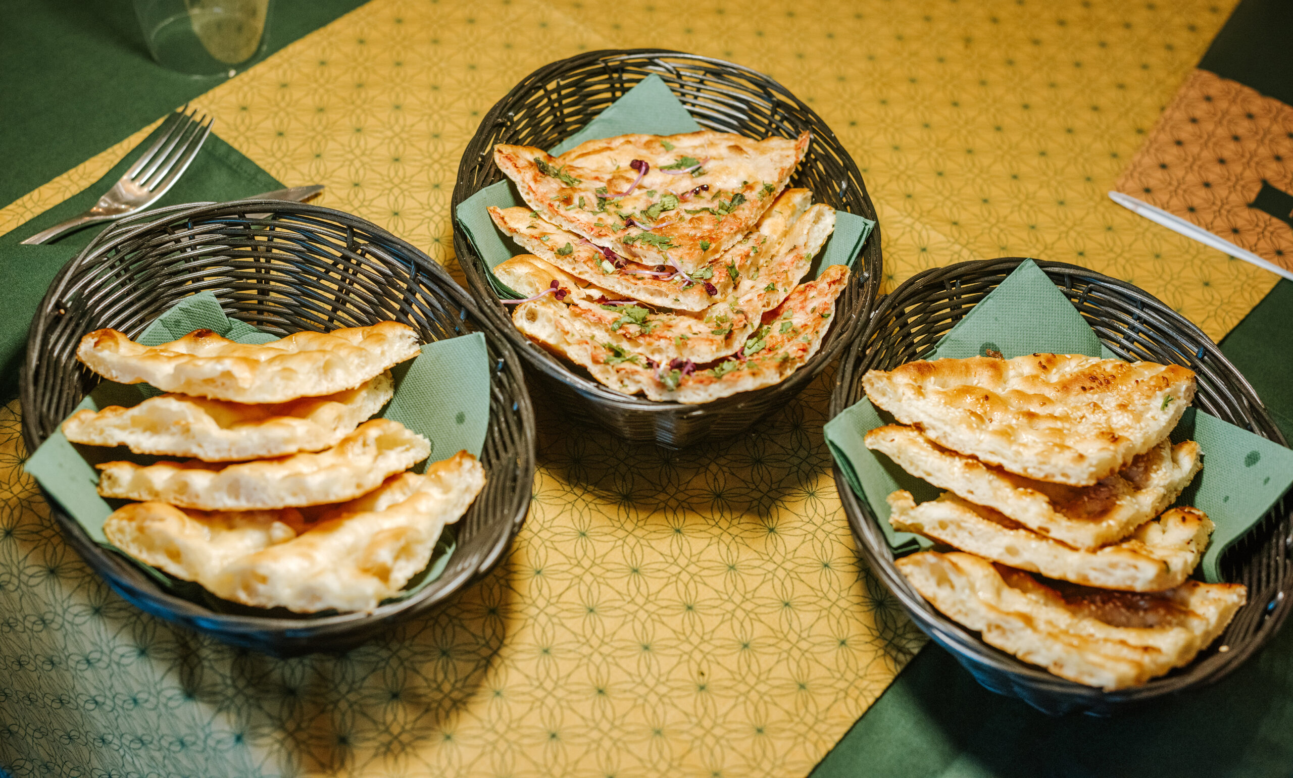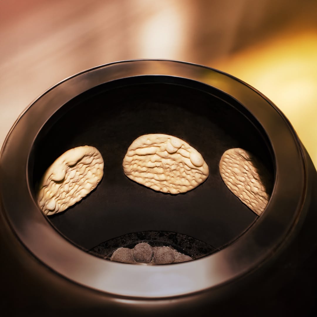 “Nel Tandoor cuociamo ogni giorno sul momento il Naan, ovvero il soffice e leggermente croccante pane basso tipico della nostra tradizione culinaria e che può essere condito con aglio, burro e coriandolo, oppure farcito con formaggio, o ancora con un mix di menta, cipolla rossa e spezie. E poi cuociamo il Roti, un pane ancora più sottile preparato con farina integrale ma senza lievito che può accompagnare qualsiasi piatto. Per cuocere il Naan si prende in mano l’impasto, lo si stende, poi lo si appoggia su un cuscino apposta e infine lo si spruzza con l’acqua prima di incollarlo all’interno del Tandoor, in modo che resti sospeso al di sopra della fonte di calore. Il pane si gonfia diventando leggero e assumendo un colore dorato. E poi nel Tandoor grigliamo la carne. La cottura della carne si effettua su spiedi lunghi circa un metro appoggiati sul collo del Tandoor.