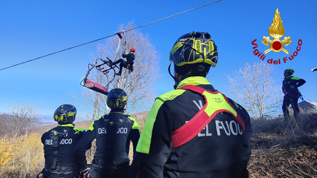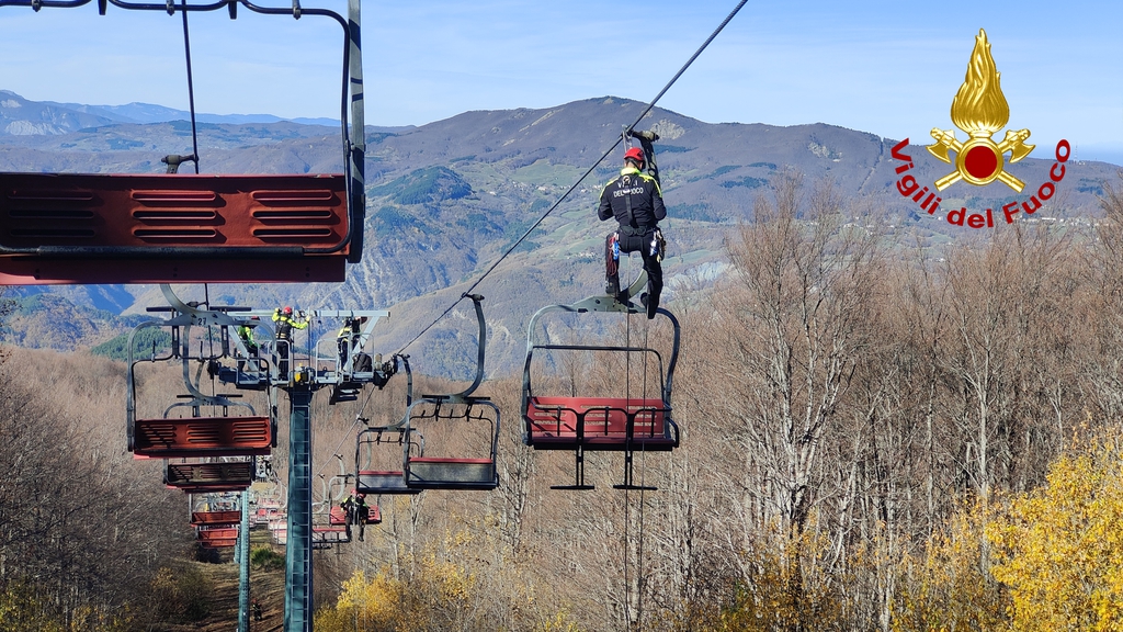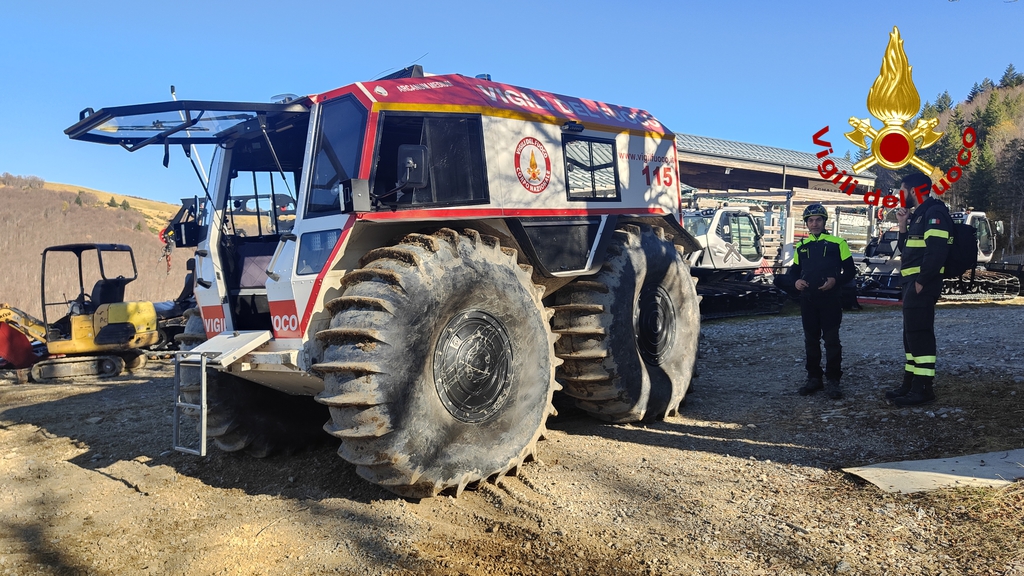 Nel magnifico scenario del monte Cimone presso gli impianti di risalita di Pian del Falco a Sestola sull’Appennino modenese a 1350 m.s.m., i vigili del fuoco con abilitazione avanzata e modulo neve e ghiaccio, hanno svolto l’ addestramento SAF (speleo alpino fluviale) in previsione dell’ apertura dell’anno sciistico, grazie alla collaborazione e disponibilità dei gestori degli impianti di risalita. È stata simulata un’ evacuazione degli occupanti della seggiovia, durante la quale si sono provate le varie tecniche operative, sia discendendo dal cavo portante, che risalendo da terra. Impegnati in totale 30 operatori vf provenienti dalle varie provincie della regione. Sfruttando l’ intera giornata addestrativa, si è testato l’ utilizzo del mezzo speciale VF “SHERP”in dotazione al distaccamento di Sassuolo, capace di affrontare ogni tipologia di terreno e in grado di galleggiare e navigare persino in acqua.