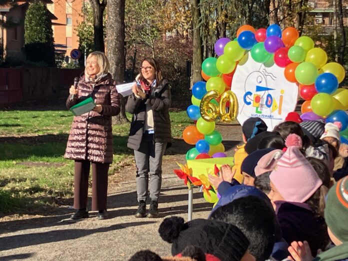L’Inno d’Italia del Corpo Bandistico della Città di Carpi ha aperto i festeggiamenti del 60esimo compleanno della Scuola Collodi di via Bortolamasi a Carpi. E’ intervenuta la nuova dirigente Silvia Cuoghi che ha iniziato quest’anno il suo incarico presso il Terzo Comprensivo. Erano presenti l’assessore Serena Pedrazzoli in rappresentanza dell’Amministrazione comunale e l’ex dirigente Tiziano Mantovani insieme a tanti insegnanti, collaboratori scolastici e alunni del presente e del passato. Le note della canzone Collodi Rock sono risuonate nel quartiere e il taglio della torta ha coronato la grande festa per i sessant’anni della scuola