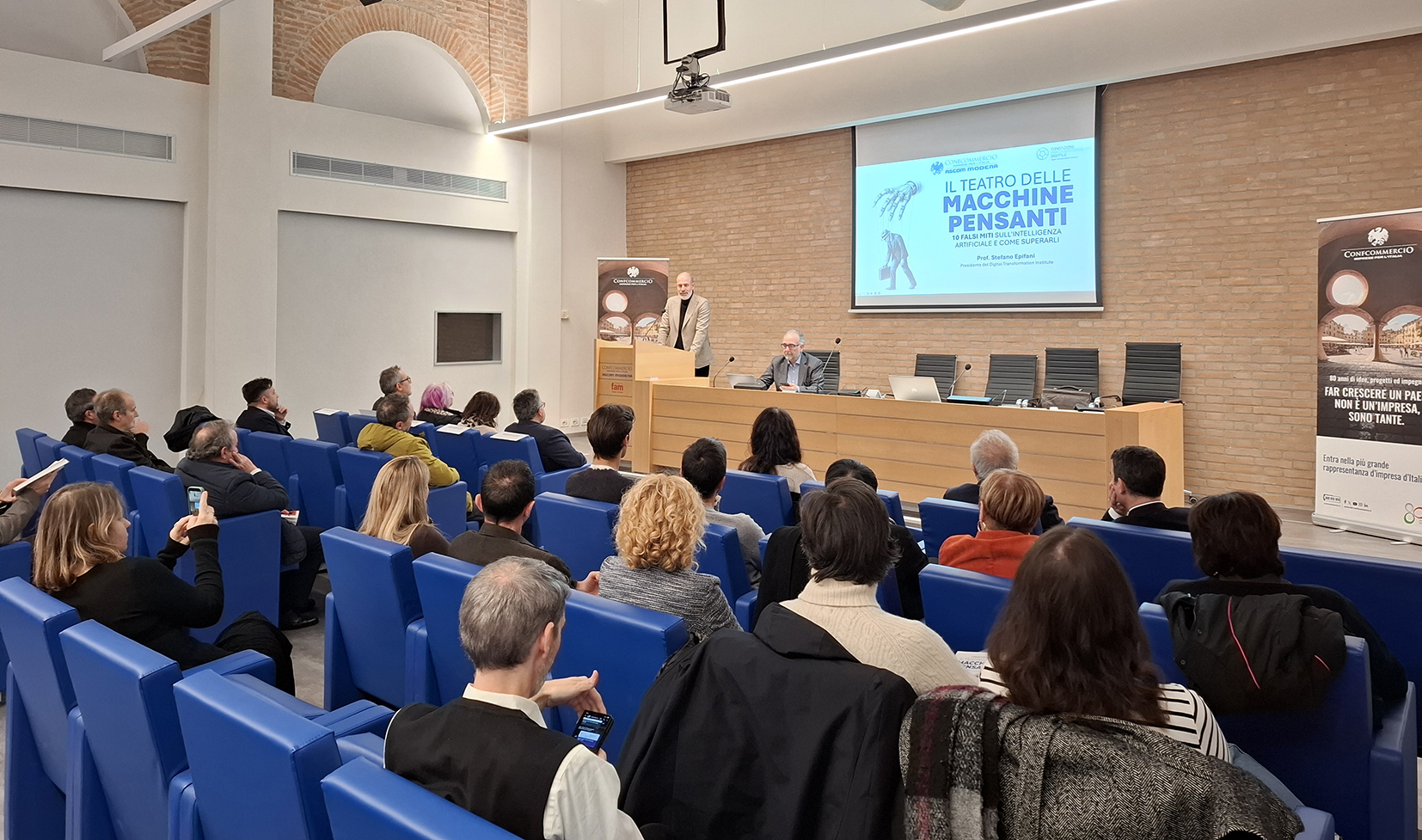 Stefano Epifani è stato l’ospite dell’assemblea di Confcommercio Modena, un appuntamento che quest’anno ha posto al centro della discussione l’Intelligenza Artificiale, tema ormai dominante nel dibattito pubblico. L’Assemblea è stata occasione per un confronto aperto e partecipato su una tecnologia divenuta protagonista dei nostri tempi, offrendo ai presenti uno sguardo nuovo sul rapporto tra innovazione e impresa.