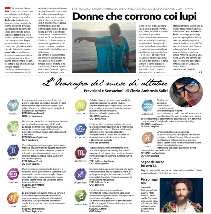 La Redazione di Tempo si unisce al cordoglio della famiglia per la morte di Cinzia Ambrosia Salici che è stata nostra collaboratrice a partire dal settembre del 2019 fino al novembre del 2023. Su Tempo si occupava della rubrica dedicata all’oroscopo perché la sua grande passione era l’astrologia. Grazie alla nonna, Cinzia fin da bambina aveva imparato a leggere le carte e a scrutare il cielo. Aveva poi continuato a studiare la magia bianca, la purificazione di ambienti, le erbe e le costellazioni. Grazie Cinzia.