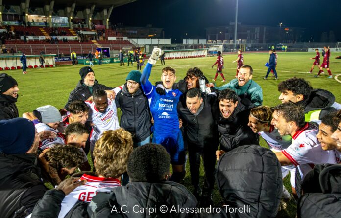 La partita, equilibrata, intensa, con poche occasioni ma tanta battaglia in ogni zona del campo. Il Carpi ha saputo soffrire, mantenere compattezza e lucidità nei momenti più complessi, facendo emergere ancora una volta la propria identità di squadra pragmatica e mentalmente forte. E proprio quando la gara sembrava destinata a chiudersi senza reti, i biancorossi hanno trovato l’affondo perfetto: palla che danza in area, Pietra che legge la traiettoria con istinto e rapidità, realizza una rovesciata da cineteca. È il gol che decide tutto, che fa esplodere il settore ospiti e che chiude la serata con un finale quasi epico. Il Carpi porta dunque a casa tre punti fondamentali, non solo per la classifica, ma per il segnale che manda al campionato: questa squadra sa reggere, sa colpire nei momenti decisivi e soprattutto ha sviluppato una maturità che raramente si vede nelle formazioni giovani e costruite su equilibri così sottili. Lontano dal “Cabassi” i biancorossi continuano a esprimere un cinismo sorprendente: cinque vittorie esterne non sono un caso, ma l’indicatore di una mentalità ormai radicata. Il quarto posto è oggi un risultato concreto, non più episodico, e la distanza abissale dalla zona playout certifica il percorso di crescita costante di questo gruppo. La vittoria di Pontedera può rappresentare uno snodo importante della stagione, una di quelle gare che si ricordano alla fine del campionato perché cambiano slancio, convinzioni e prospettive. Il Carpi non si nasconde, non si accontenta e, soprattutto, continua a vincere nei modi in cui vincono le squadre con personalità. E quando una partita si porta via al 96’, in trasferta, con l’ex che decide, il segnale diventa ancora più chiaro: questi biancorossi hanno ancora molto da dire.