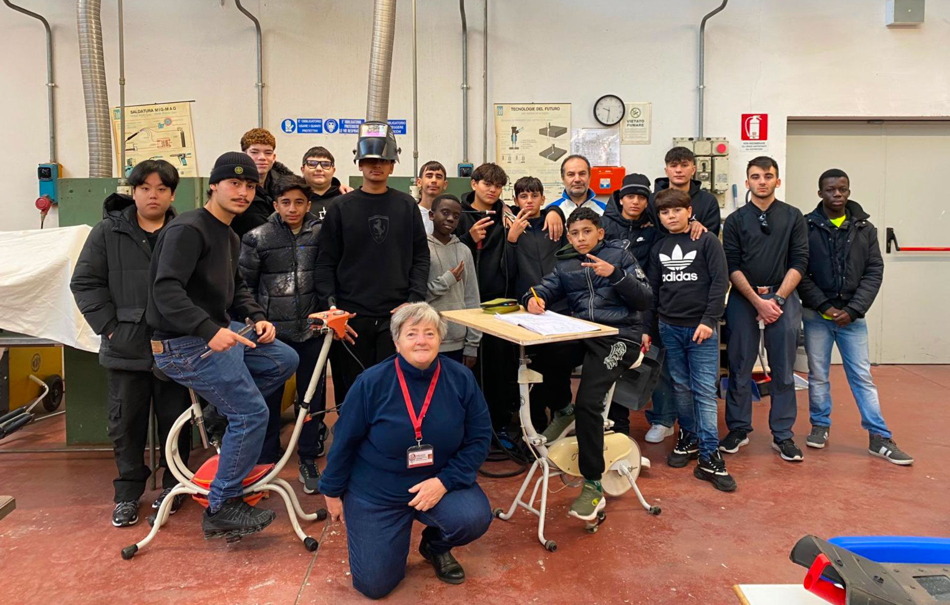 Sabato 6 dicembre è stata presentata nell’aula magna del Vallauri di Carpi la prima bici banco realizzata dagli studenti dell’istituto – classi 1A e 5A indirizzo Meccanico- guidati dal Professor Alessio Gesualdi. L’iniziativa è nata qualche anno fa in Canada per poi diffondersi soprattutto nel nord Europa, e al Vallauri l’idea è stata proposta dalla dottoressa Manuela Bellelli, che cura lo sportello psicologico dell’istituto. Nelle scuole è presente per permettere a ragazzi che mal sopportano la staticità di alcuni insegnamenti di gestire la propria irrequietezza attraverso il movimento, ma è presente anche in altri contesti, come bar, biblioteche, luoghi di incontro come mezzo di relax.