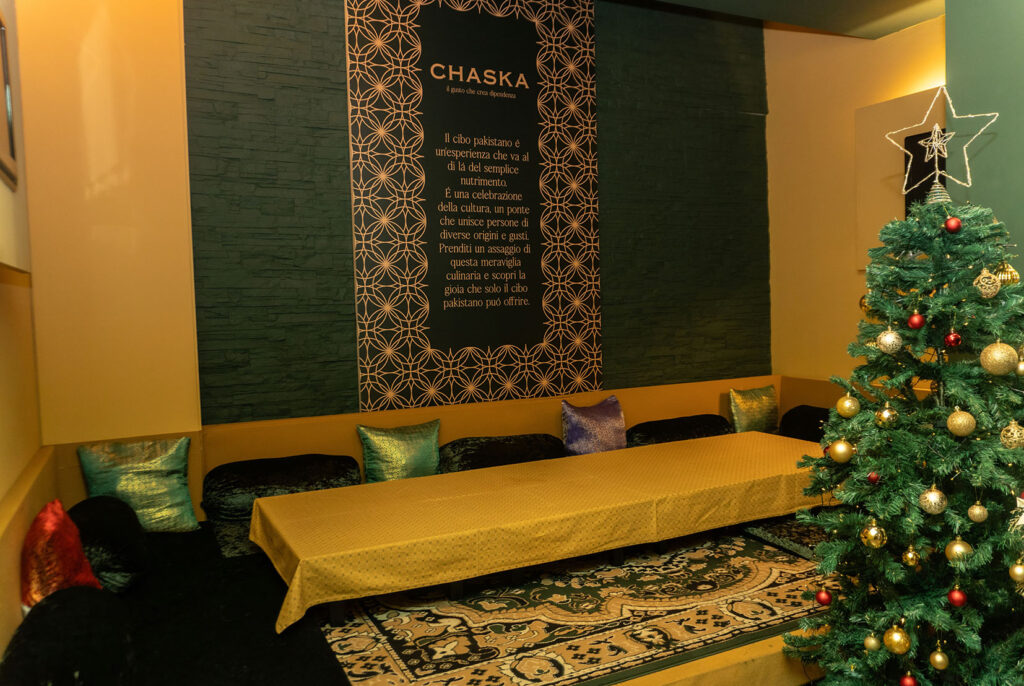 Il viaggio dei sapori - È tempo di feste anche al Ristorante Chaska in piazzale Ramazzini n°43. Albero addobbato con luci e decorazioni, una sala speciale dove cenare seduti su comodi cuscini attorno a un grande tavolo all'insegna della convivialità e del comfort, e una sorpresa che unisce la tradizione italiana a quella del Pakistan, come hanno raccontato i tre giovani titolari Rehan Mohiuddin, Muteeba Zahid e Hamza Ameer: “è un dono fatto a mano da noi per celebrare e ringraziare i clienti che ci hanno scelto e ci sostengono, e festeggiare insieme questo magico periodo dell'anno”.