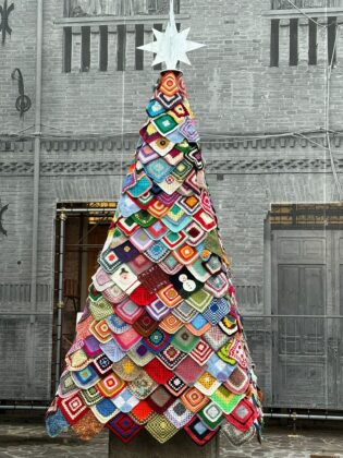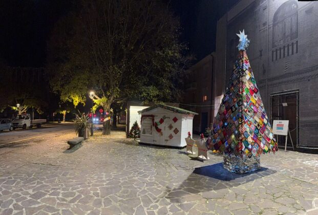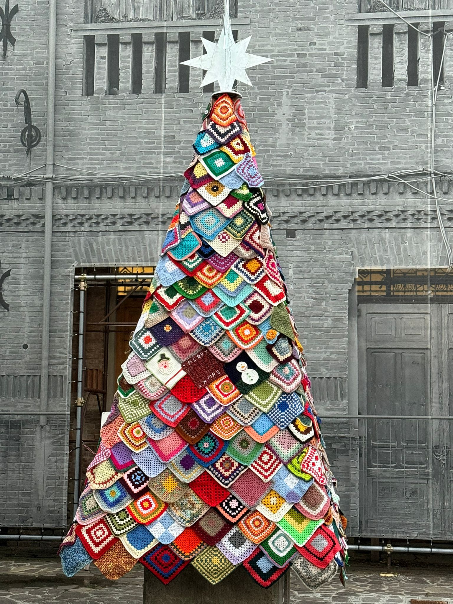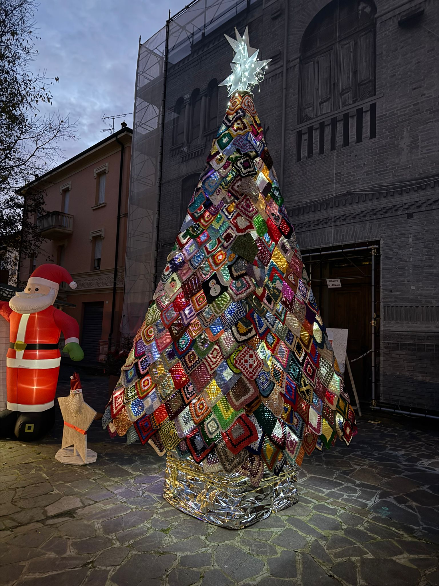 È alto quattro metri ed è composto da circa 450 mattonelle colorate realizzate all’uncinetto da un gruppo di volontarie ‘uncinettine’ e cucite ad una ad una alla rete in plastica che funge da supporto. È questo che rende davvero speciale l’albero di Natale che campeggia in piazza a Novi di Modena. Una novità di quest’anno che stupisce e riscalda i cuori. Paola Ghidoni, una delle ideatrici e realizzatrici del progetto insieme alle amiche Simonetta Salvaterra e Antonella Bacchiega, ha raccontato: “L’albero è nato quasi per gioco. Siamo tre amiche con la passione per gli oggetti fatti a mano che creiamo per hobby. Guardando altri alberi allestiti in diversi paesi, abbiamo lanciato la sfida alle appassionate di uncinetto e di lavoro a maglia di raccogliere il maggior numero di ‘mattonelle’ colorate per allestire l’albero di natale da sfoggiare in occasione del mercatino natalizio chiamato ‘Feliz Novidad’, giunto quest’anno alla quarta edizione. La sfida è stata accettata da una ventina di donne, da noi affettuosamente chiamate ‘uncinettine’, che hanno lavorato con entusiasmo e fantasia fino a consegnarci quasi 500 mattonelle”.