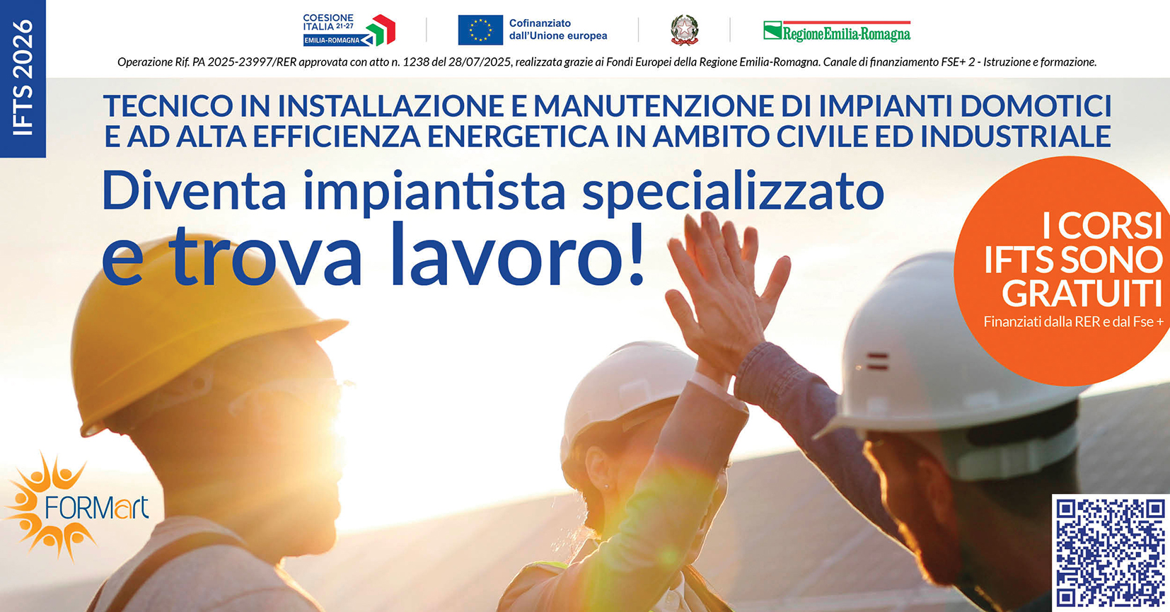 Per presentare tutte le caratteristiche e le opportunità, il 13 gennaio 2026 alle 18.30 si svolgerà l’open day del corso. Due gli interventi principali. Andrea Tondelli, titolare dell’impresa termoidraulica Tecnica Impianti, mostrerà gli strumenti digitali e i software all’avanguardia con cui si lavora oggi nel settore. E a conferma degli sbocchi occupazionali, Giovanni Pilati parlerà della sua esperienza: ex partecipante che ha trovato lavoro non appena terminato il corso. A seguire, i tutor illustreranno gli argomenti principali del corso, tra cui: impiantistica civile e industriale, impianti alimentati da fonti rinnovabili, domotica, visori VR/AR e smart tool per la manutenzione, soluzioni di efficienza energetica. Come tutti i corsi IFTS FORMart realizzati grazie ai Fondi Europei della Regione Emilia-Romagna ha la durata di 800 ore. Questo corso si articola in 440 ore di lezioni teoriche e di laboratorio, 50 ore di project work e 310 ore di stage in aziende del territorio. Le lezioni in aula saranno tenute da professionisti del settore e da docenti del Dipartimento di Scienze e Metodi dell’Ingegneria (DISMI) dell’Università di Modena e Reggio Emilia. Numerosi i laboratori: domotica, esperienze immersive, simulazioni di progettazione e intervento tecnico in VR/AR, hackathon presso il Tecnopolo di Reggio Emilia, seminari su fonti rinnovabili, comunità energetiche e mercato dell’energia con il Cluster Solartys di Barcellona.
