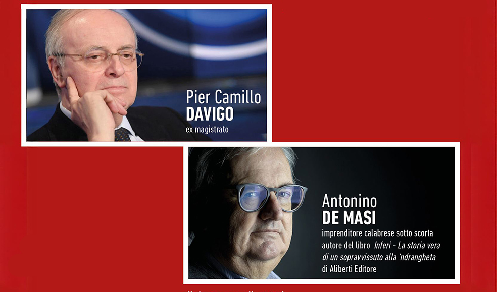 Venerdì 19 dicembre, alle ore 20,45, presso la Sala Civica Ferraresi di Novi di Modena, l'ex Magistrato Piercamillo Davigo e l'imprenditore Antonio De Masi, in dialogo con il giornalista Pierluigi Senatore, parleranno dei rischi per le imprese, delle strategie di contrasto e del ruolo essenziale che la comunità deve giocare per promuovere trasparenza e legalità.