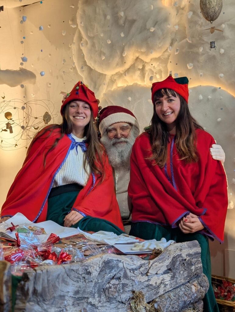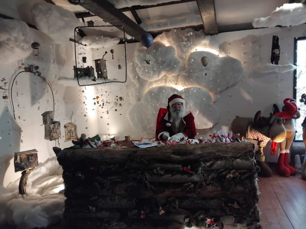 Il momento più emozionante resta l’incontro con Babbo Natale perché l’interpretazione di Palmiro è tale da lasciar credere ai più piccoli che qualcosa di straordinario ci sia davvero: Babbo Natale riceve ogni bambino alla sua scrivania e si appunta il nome sul librone, domanda se ha portato la letterina, la legge e poi consegna un piccolo dono con un sacchettino di caramelle e la celebre cioccolata speciale. Nel frattempo i “folletti” offrono tè caldo e biscotti a tutti i presenti in un clima di accoglienza semplice e familiare. Oltre all’incontro con Babbo Natale, sono previste due attività a scelta: la Casa della Fata Raccontastorie, dove lasciarsi trasportare da fiabe e racconti, oppure il Laboratorio creativo per realizzare un lavoretto da portare a casa come ricordo.