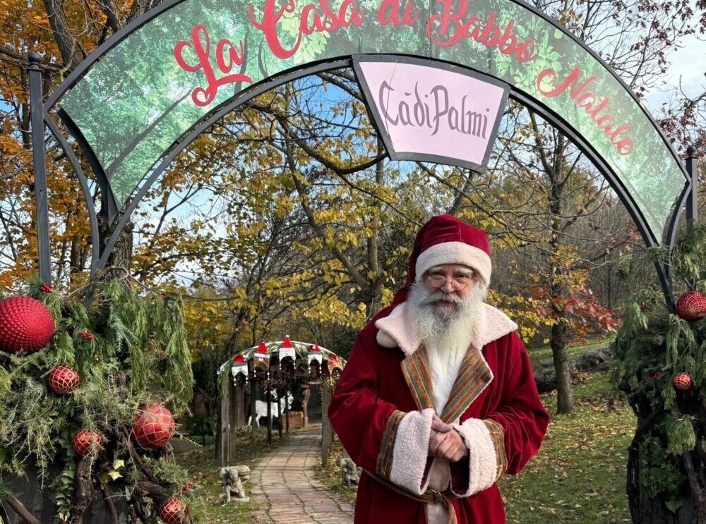 All’interno della fattoria didattica Cà di Palmi a Montebabbio, Palmiro Beneventi dal 2003 indossa con amore e generosità il mantello rosso per diventare Babbo Natale (grazie anche all’incredibile somiglianza con l’originale) e accoglie migliaia di bambini in un’atmosfera sospesa tra fiaba e natura. Quest’anno il villaggio è stato rinnovato e le scenografie, nate dalle mani dell’artista Carla Fontanesi di Cartacrea e dall’incanto dei dettagli di Antonella Dallari, sembrano uscite direttamente da un libro di fiabe, tra casette di legno, animaletti, luci soffuse e piccoli oggetti che raccontano storie.