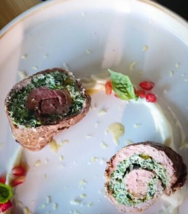 Secondo: Involtini di carne ripieni di ricotta e spinaci su crema al parmigiano