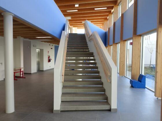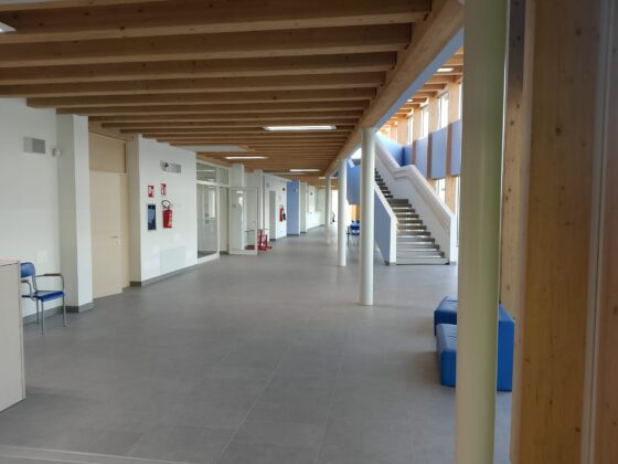 Il nuovo Polo Scolastico può ospitare 10 aule di scuola primaria e 6 di scuola secondaria di primo grado, concepite secondo criteri di massima flessibilità: la maggior parte degli ambienti è infatti dotata di pareti mobili insonorizzate che permettono di modulare gli spazi in base al numero degli alunni e alle specifiche attività previste. Il completamento dell’opera ha richiesto circa tre anni di lavori dopo la fase di demolizione delle vecchie scuole. Sebbene la posa simbolica della prima pietra risalga all’ottobre 2021, l’avvio operativo del cantiere è avvenuto nel dicembre 2022, a seguito di un necessario approfondimento normativo legato alla compensazione dei prezzi. L’attesa delle modalità attuative del Decreto Aiuti (DL 50/2022) è stata infatti una scelta fondamentale per accedere ai contributi ministeriali e garantire la piena sostenibilità economica e la corretta esecuzione di un’opera così strategica per la cittadinanza.
