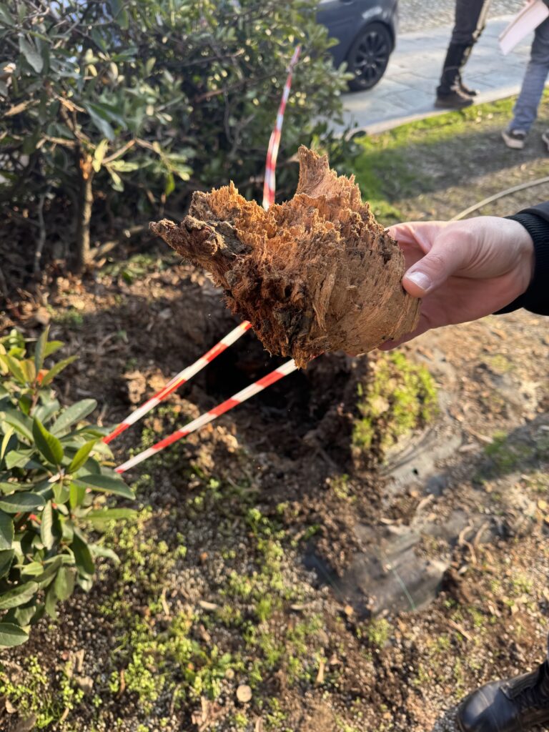 Gli alberi di piazzale Ramazzini lato ovest, 14 tigli, erano risultati in condizioni critiche e da controllare nuovamente nel breve periodo già nel corso della verifica ordinaria eseguita in estate, nell’ambito dell’attività di monitoraggio e manutenzione degli alberi collocati in aree pubbliche coordinata dal Servizio Pianificazione e gestione verde-parchi. A seguito di questi primi esiti, sono stati programmati ulteriori approfondimenti su tutti gli alberi del piazzale, culminati nelle prove di trazione eseguite nel periodo delle festività natalizie, dalle quali è emerso un quadro peggiore di quello inizialmente ipotizzato. Le analisi, infatti, hanno evidenziato apparati radicali fortemente compromessi divorati da un fungo e diventati estremamente porosi (da qui il grave rischio per la stabilità), probabilmente a causa dagli interramenti eseguiti una ventina di anni fa.