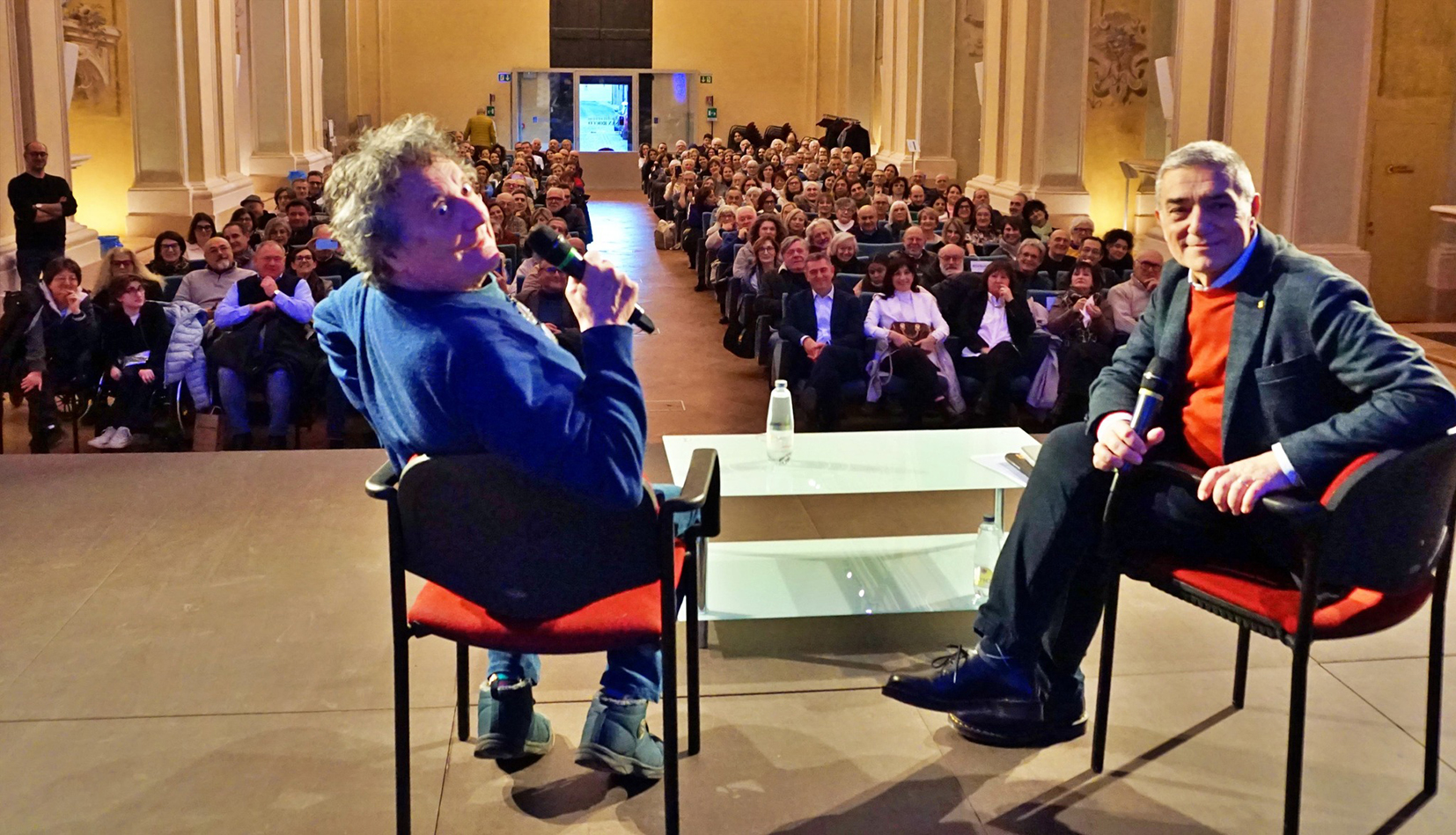 L’Auditorium San Rocco di Carpi ha fatto da cornice all’appuntamento, promosso da Fondazione Cassa di Risparmio di Carpi e CNA, all’incontro con Enzo Iacchetti arrivato in città per parlare con Pierluigi Senatore di Radio Bruno del suo libro 25 minuti di felicità, un’autobiografia edita da Bompiani dove Enzino si mette a nudo. Ad ascoltarlo quasi trecento persone che hanno sorriso e si sono emozionati con lui che “da qualche tempo ho la lacrima facile”. A sorpresa è venuto a trovarlo anche un amico di sempre, Beppe Carletti dei Nomadi con cui Iacchetti aveva tentato un’avventura sanremese (la musica è la sua grande passione e amore, oltre al teatro). Enzino Iacchetti è un uomo tenero e a volte triste, nel cuore continua a scrivere poesie bonsai, è un malincomico. “Vorrei che i lettori capissero quanto sono fragile. Per carità, sono stato fortunato, ho avuto successo dopo una gavetta lunghissima, però mi si uccide con poco”. Enzo Iacchetti alla consueta malinconia ha aggiunto in questi anni la solitudine che dice “mi accompagna da quando sono nato, ma che adesso avverto di più”. Nonostante la popolarità si sente un insicuro. “Domando di continuo “com’è andata?”, e ho sempre paura che mi rispondano “benissimo” e poi si voltino scuotendo la testa. Forse, mi stanno raccontando bugie da trent’anni e passa. Ho preso tante botte e mi sono sempre rialzato”.