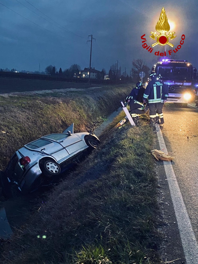 Per cause ancora in corso di accertamento, uno dei due veicoli è uscito di strada, finendo la propria corsa nel fosso adiacente alla carreggiata.