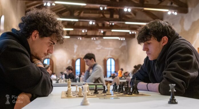 Grande successo ieri a Carpi per il 1° Active Master U20, il torneo organizzato dal Club 64 di Modena nella splendida cornice della Sala delle Vedute del Palazzo dei Pio. Trentatré giovani talenti under 20 si sono sfidati in sette turni di partite rapid per una giornata che ha messo in luce il meglio degli scacchi giovanili italiani. A imporsi è stato il Maestro FIDE Claudio Paduano con 6 punti, giocatore già protagonista come finalista del Campionato Italiano Assoluto 2025. Secondo posto per il solierese Ottavio Mammi, Candidato Maestro, che ha chiuso il torneo con una spettacolare combinazione di matto contro Liloni nell’ultima partita. Terzo Francesco Mattia Liloni con 5 punti.