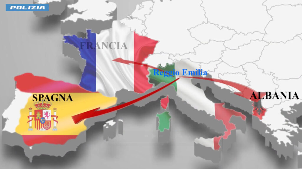 Gli arresti e le perquisizioni, oltre che nelle province di Reggio Emilia, Bergamo, Brescia e Savona, sono in corso di esecuzione anche in Francia, Spagna e Albania, grazie ad un coordinamento operativo con le autorità di polizia straniere ed in particolare con il Dipartimento della Polizia Criminale albanese.