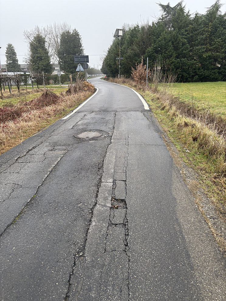 “Via Pola Esterna, nel corso di due differenti tranche, è stata oggetto di operazioni di asfaltatura, dalla Tangenziale 12 Luglio 1944  fino a via Sant’Antonio e dal supermercato MD all’incrocio con via Chiesa di Cibeno. A mancare all’appello c’è però un ulteriore tratto estremamente ammalorato: “sulla carreggiata ci sono ampie buche, dislivelli e fessurazioni che rendono il transito estremamente pericoloso, soprattutto per le due ruote” denuncia un residente. La strada, prosegue, “è poi priva di illuminazione e questo, per cicli, motocicli, monopattini e autovetture, soprattutto  nelle prime ore del mattino, così come alla sera, costituisce un pericolo reale”.