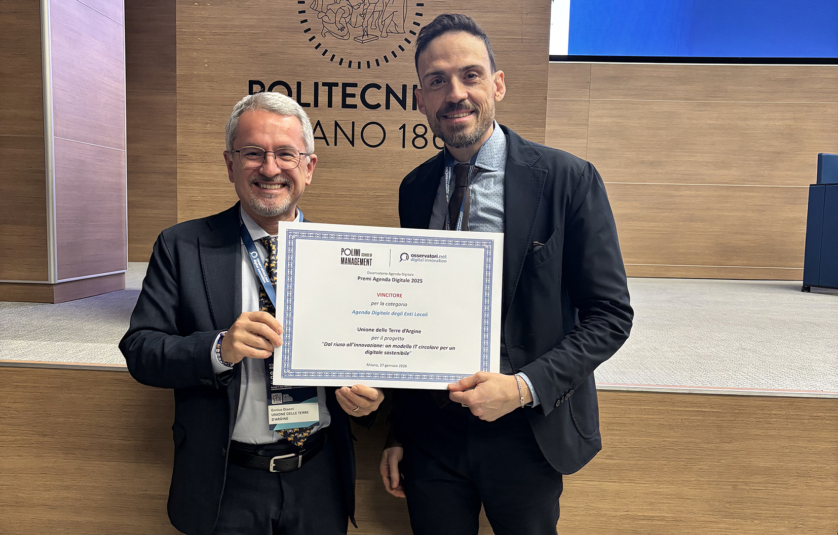 Il progetto premiato riguarda la gestione sostenibile delle dotazioni informatiche dell’Ente, attraverso il riuso delle apparecchiature, l’allungamento del ciclo di vita dei dispositivi, la riduzione dei rifiuti elettronici e una maggiore attenzione all’impatto ambientale delle tecnologie digitali utilizzate quotidianamente nei servizi pubblici. La premiazione si è svolta oggi nell’ambito del convegno “Italia digitale: il nuovo mondo”, ospitato presso il Politecnico di Milano, occasione di confronto tra amministrazioni, università e operatori pubblici sui temi della trasformazione digitale.