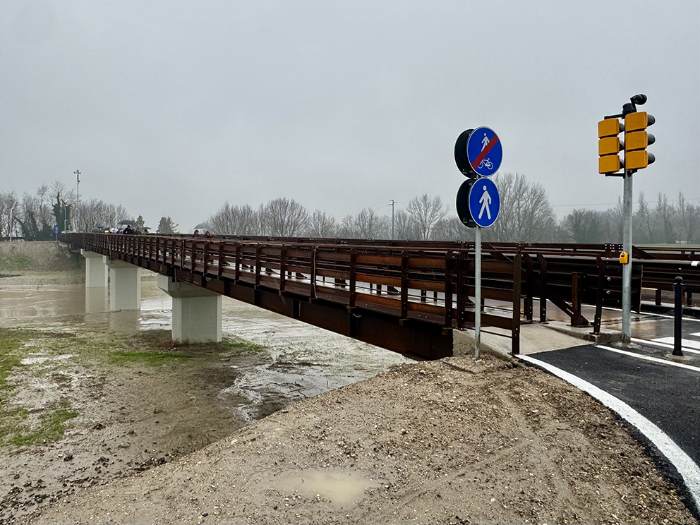 Riapre al traffico domani, mercoledì 4 febbraio, il ponte di San Martino Secchia sul quale si è concluso l’intervento per il miglioramento strutturale e sismico eseguito dal Comune di Carpi. La nuova struttura, che sarà riaperta ufficialmente alle 11, con il taglio del nastro da parte del sindaco di Carpi Riccardo Righi, consente una diversa conformazione della piattaforma stradale che, a fronte di una carreggiata larga 3,5 metri, ha consentito di realizzare anche due piste pedonali e ciclabili (della larghezza utile di 1,5 metri) poste su ogni lato della carreggiata e realizzate con struttura metallica a sbalzo.