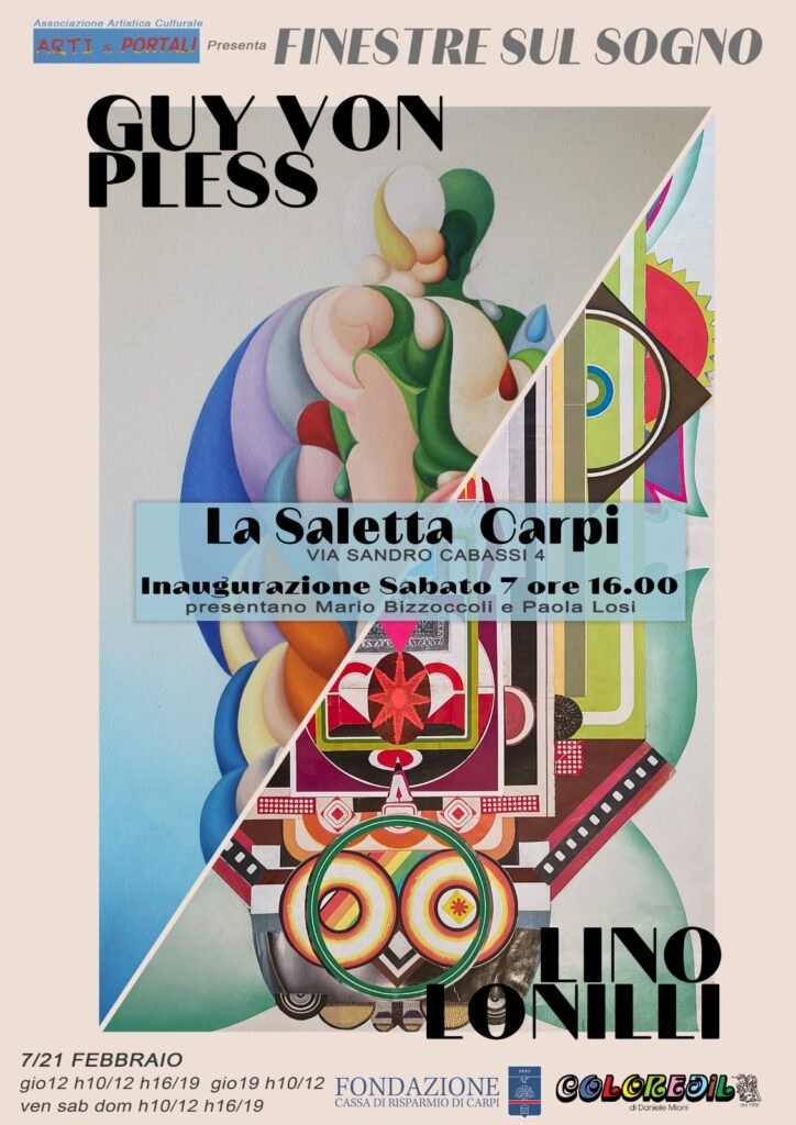 Inaugura sabato 7 febbraio la mostra “Finestre sul sogno” dedicata a Guy Von Pless e Lino Lonilli a cui l’associazione artistica culturale Arti & Portali tributa il giusto riconoscimento dopo la loro scomparsa. L’appuntamento è alle 16 presso la saletta della Fondazione CR Carpi in corso Cabassi 4. Presentano Mario Bizzoccoli e Paola Losi.