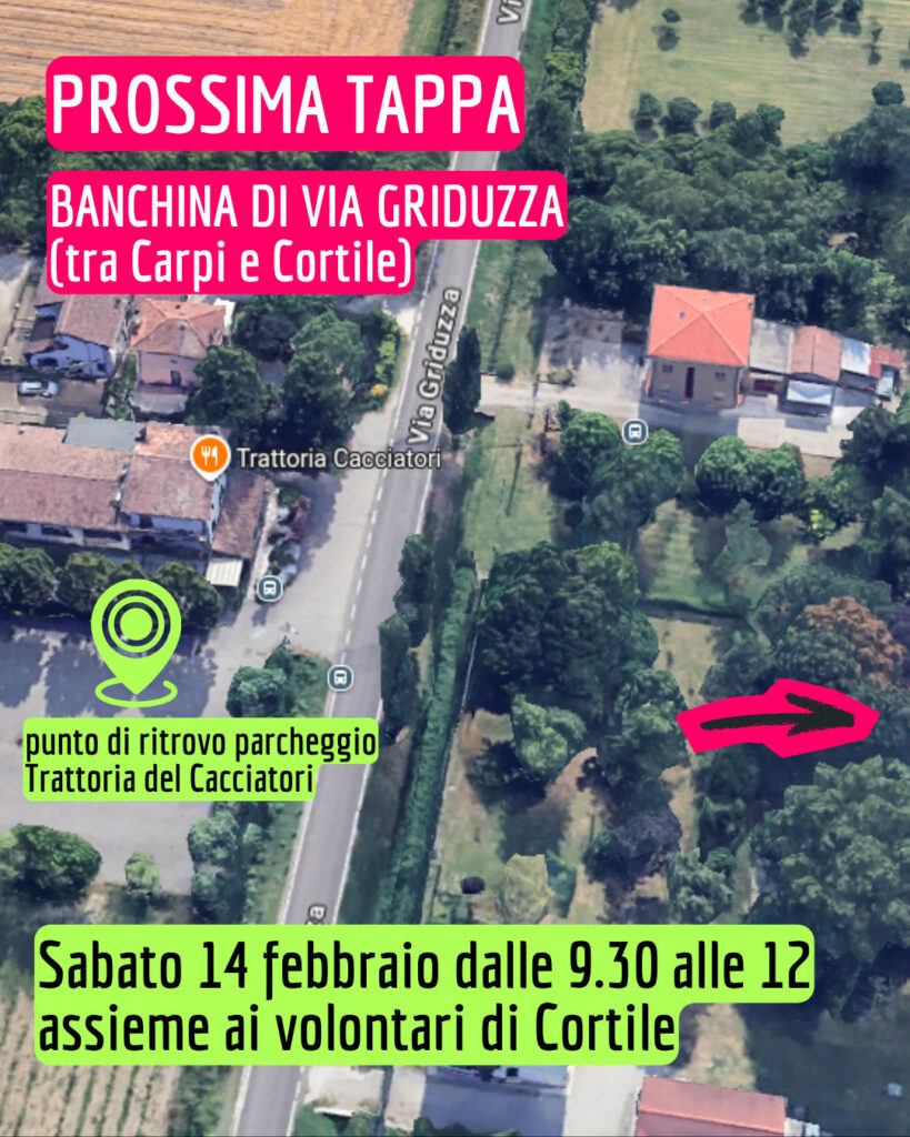 Sabato 8 febbraio Legambiente Terre d’Argine ha organizzato una mattina di raccolta rifiuti abbandonati nella zona tra il cavalcavia e la rotonda di Fossoli. Sabato 14 febbraio i volontari torneranno in azione per ripulire la banchina di via Griduzza.