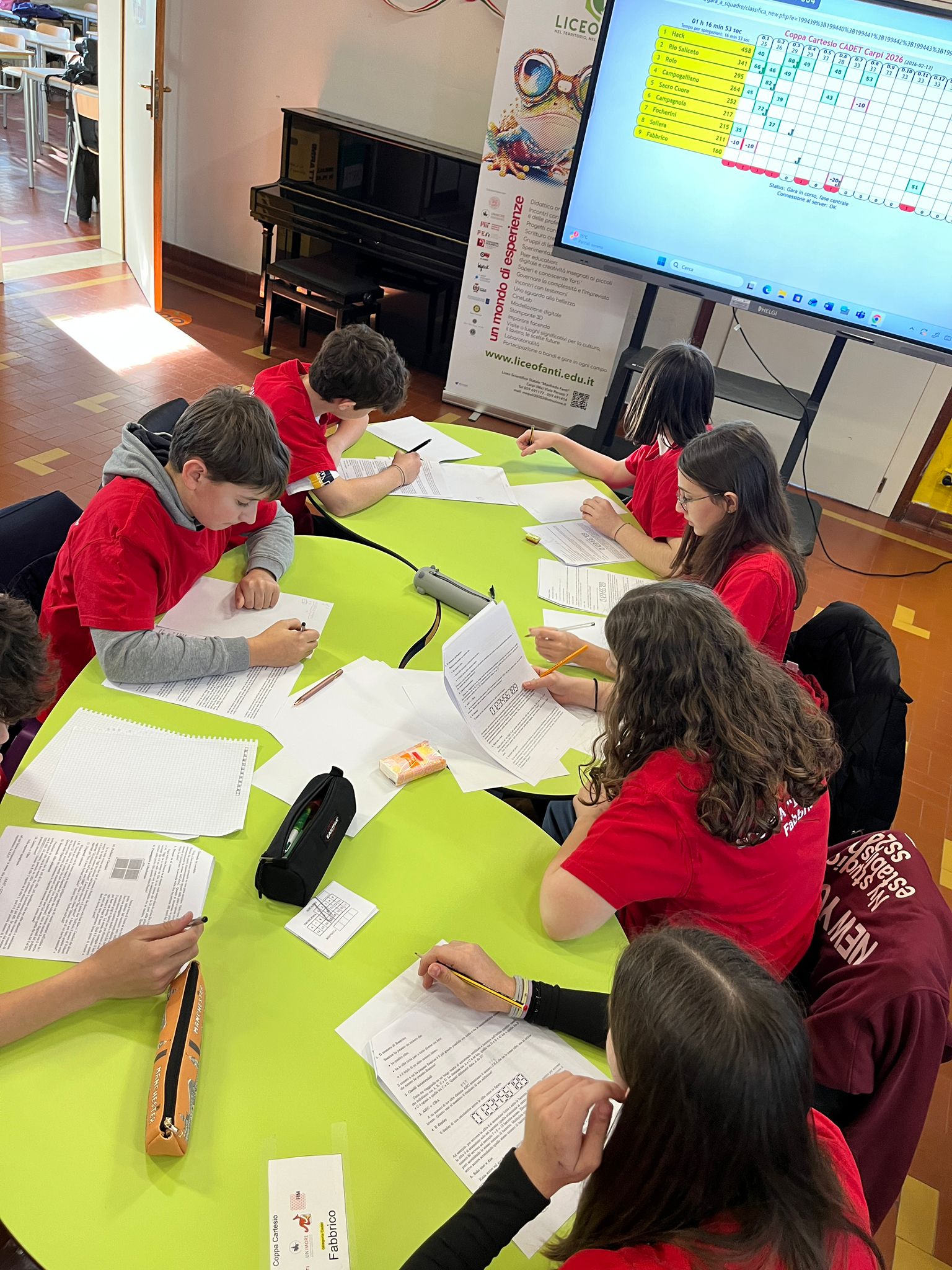 Ogni squadra, sia per la categoria benjamin (prima e seconda media) sia per la categoria cadet (terza media) era composta da sette studenti e studentesse: 119 i ragazzi e le ragazze che hanno preso posto nell’atrio giallo e nelle aule della nuova palazzina Fanti2 del Liceo Fanti.