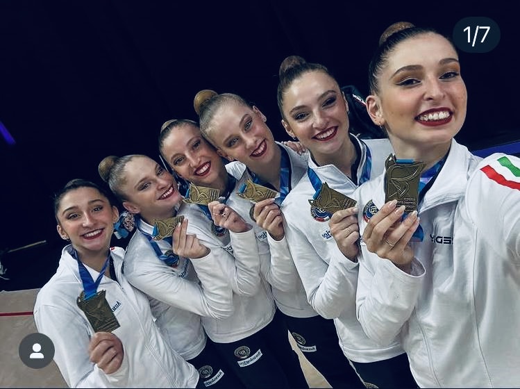 Un percorso costruito passo dopo passo, che oggi porta Alexandra a vestire l’azzurro della Nazionale, coronamento di anni di impegno, visione e determinazione. Il cammino di Alexandra in maglia azzurra è iniziato già nel 2019 con l’ingresso nella squadretta juniores, con cui ha conquistato risultati di assoluto prestigio: un bronzo ai Campionati Europei e tre medaglie d’argento ai Campionati Mondiali. Nel 2025 è arrivato il passaggio alla squadra senior, confermando fin da subito il proprio valore a livello internazionale: oro alla European Cup di Baku, un argento e un bronzo ai Campionati Europei di Tallinn, un oro nel team e il bronzo nella specialità dei 5 nastri sempre a Talliin.