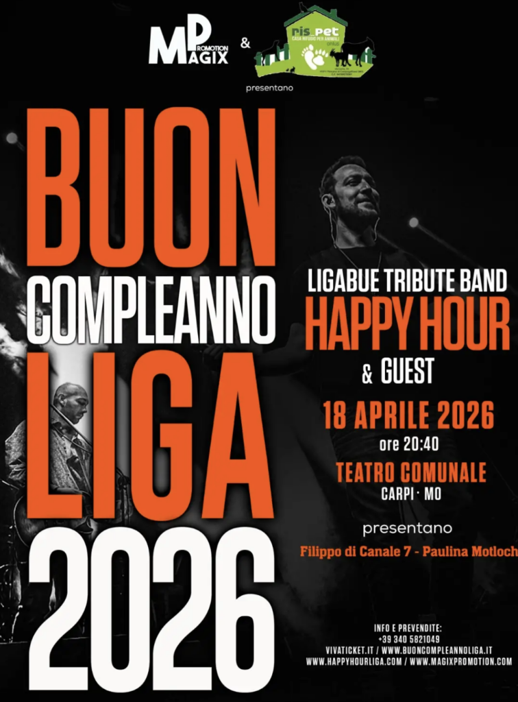 Un evento musicale per sostenere l’attività di Ris-Pet, il Rifugio per la cura di cani e gatti disabili a Panzano di Campogalliano in via Lama, 23. Buon Compleanno Liga si terrà il prossimo 18 aprile sul palco del Teatro Comunale di Carpi e, come da tradizione, la tribute band degli Happy Hour proporrà le canzoni più conosciute, emozionanti e gli ultimi brani del rocker di Correggio. Non sarà solo una serata di spettacolo e buona musica ma anche di solidarietà perché coloro che assisteranno al concerto contribuiranno al sostegno dell’attività dell’associazione Ris-Pet.
