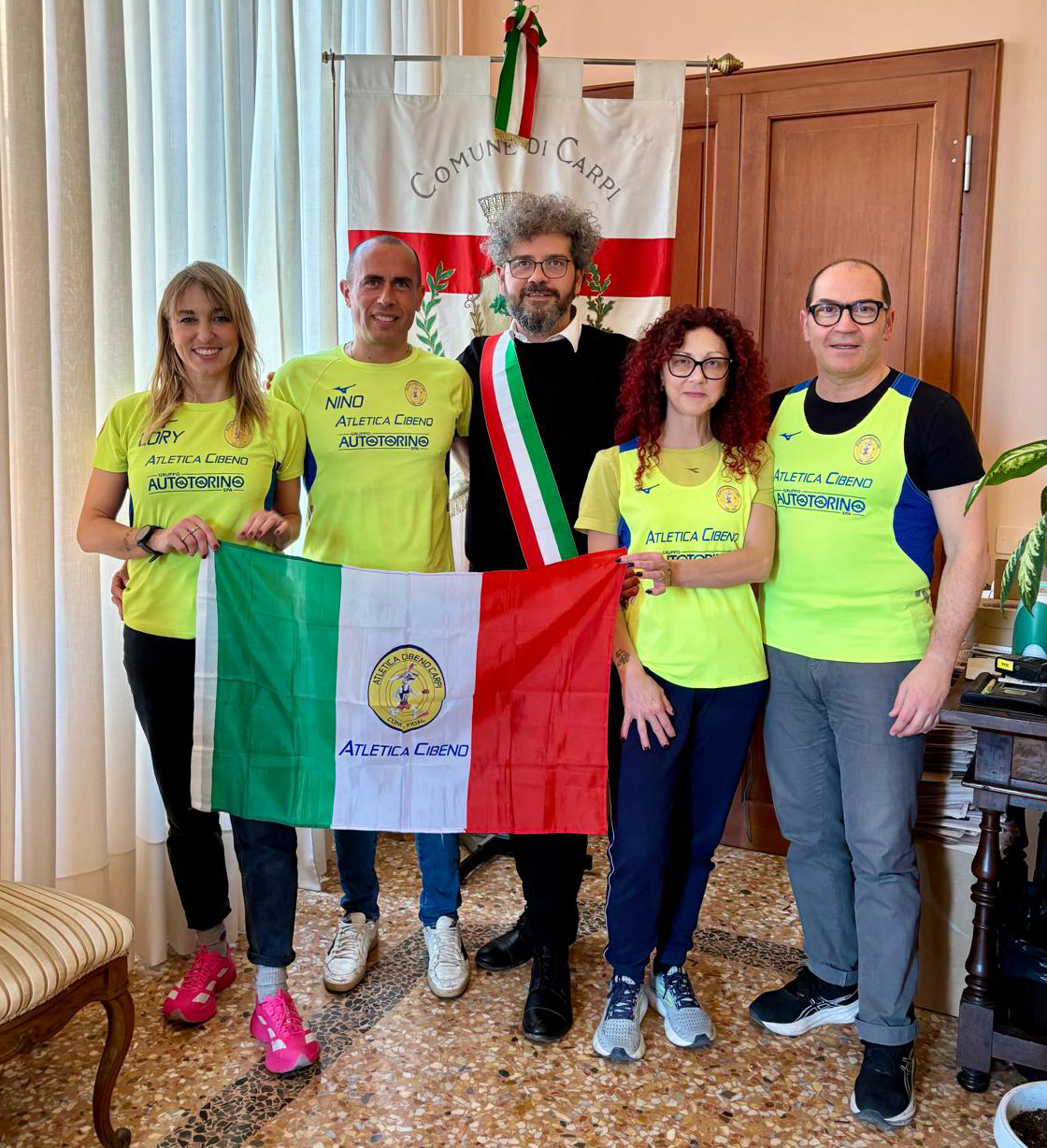 Grande emozione in Comune dove il sindaco Riccardo Righi ha ricevuto i quattro atleti dell’Atletica Cibeno per augurare loro un caloroso in bocca al lupo in vista della prestigiosa Tokyo Marathon 2026. A rappresentare la società saranno Nino Squatrito, Lorena Incerti, Raffaella Marzuoli e Giancarlo Peracchia, pronti a sfidare una delle maratone più iconiche al mondo. Per tutti loro l’obiettivo è la conquista della stella delle Major, il celebre circuito delle sei maratone internazionali.