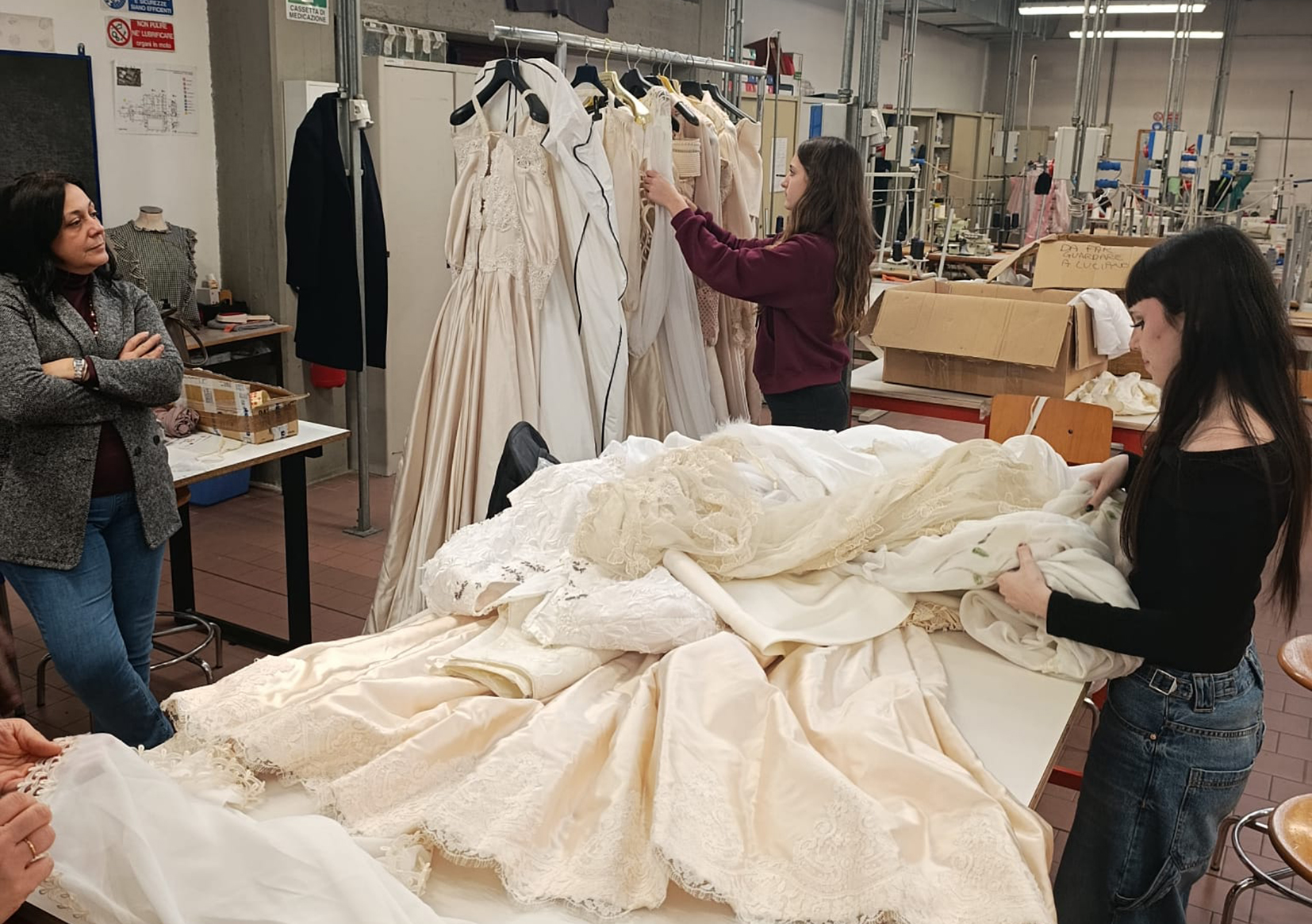 Rivolto alle classe seconde, terze e quarte dell’Indirizzo Moda, il progetto ha raccolto l’entusiasmo dei ragazzi, spiega la docente Silvia Barletta: “non appena hanno visto i vestiti da sposa erano a dir poco elettrizzati. Le ragazze non hanno resistito e li hanno subito voluti provare. Ho fatto notare il taglio sartoriale e la preziosità di ricami e tessuti, qualità sempre più rare, e loro non vedono l’ora di mettersi in gioco”. Una decina di studenti ha aderito prontamente e ora, aggiunge Silvia, “i ragazzi si ritroveranno un pomeriggio alla settimana in laboratorio per ripensare lo style dell’abito che hanno scelto, potendo contare anche sull’aiuto e l’esperienza di una esperta esterna che metterà a loro disposizione la sua conoscenza in materia di abiti da sposa”. Direttamente dagli Anni Settanta e Ottanta alcuni vestiti usati hanno bisogno di una decisa sferzata di energia per tornare al passo coi tempi ma i ragazzi, “con la loro creatività e freschezza – prosegue Linda – saranno sicuramente in grado di stupirci”. E allora che le danze abbiano inizio, e tra strascichi, veli, pizzi e un mare di perline, ne siam certi ne vedremo delle belle.