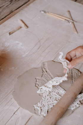 “Oggetti di uso quotidiano pensati per la tavola.  La collezione di InTerra è composta da pezzi unici in ceramica, realizzati con uno stile volutamente grezzo su cui imprimo trame di stoffe, pizzi e altri materiali. La parola chiave delle mie ceramiche è ‘imperfette’. Non è un aggettivo semplice da usare in una quotidianità sempre alla ricerca della perfezione, ma quella di InTerra è un’imperfezione amata e voluta per distinguersi ed affermare la propria identità. I bordi mai lisci, sempre diversi, sono lo specchio di quello che siamo e che dovremmo abbracciare con orgoglio. Non ci sono stampi: ogni persona nella nostra vita è diversa e sono proprio le nostre differenze ad arricchirci e farci crescere”.