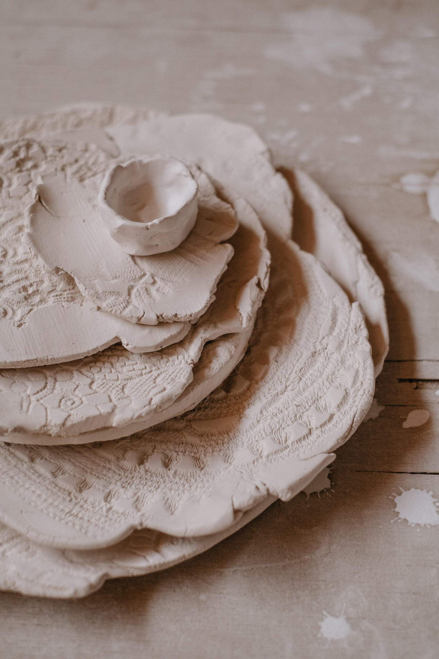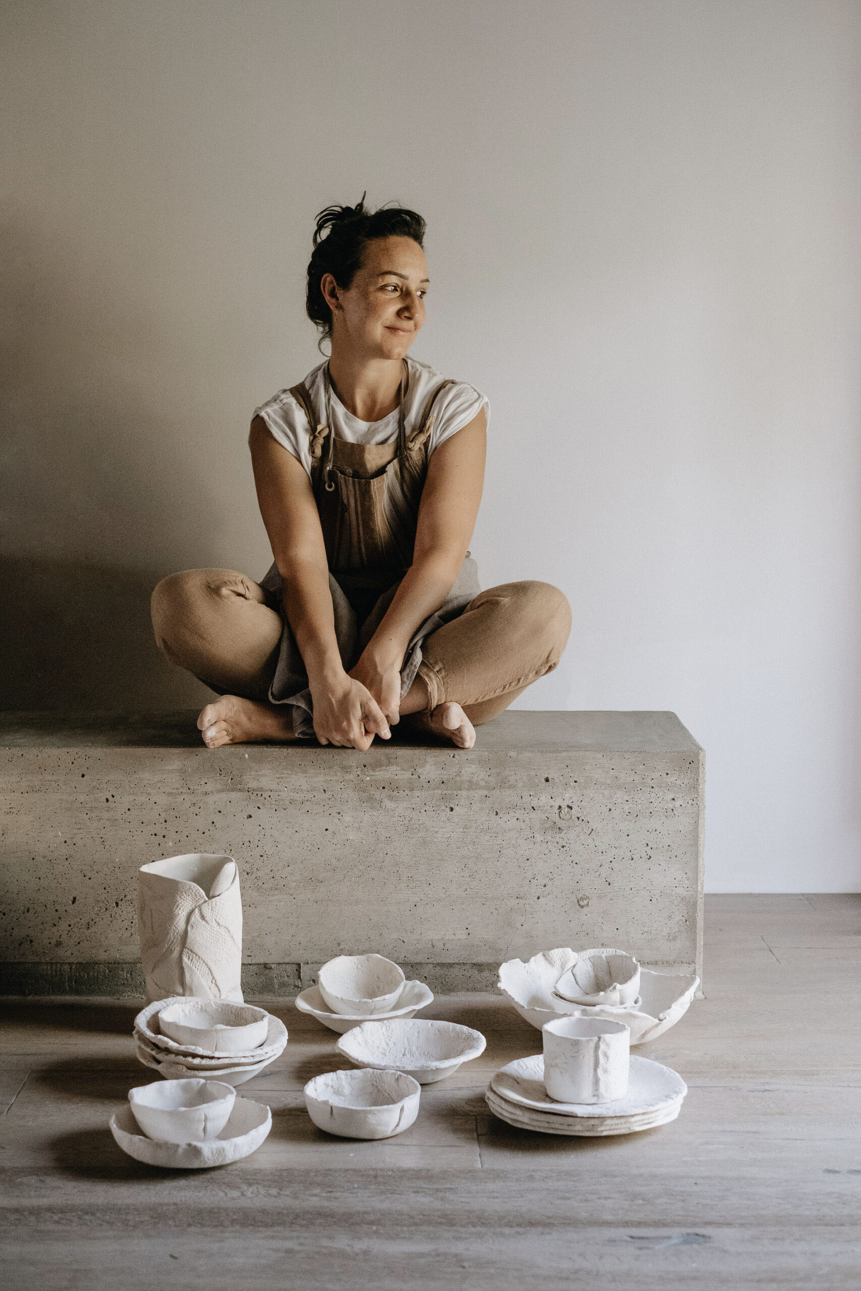 Così nel mezzo di un mutuo e di una ristrutturazione ho lasciato il mio lavoro da designer di abbigliamento femminile per trovare finalmente quello che non avevo mai avuto prima: il tempo per dedicarmi a quello che mi faceva stare bene. Ho deciso di costruire da sola il mio nuovo progetto, di dare vita a InTerra, per conciliare vita e lavoro, lentezza e fatica, argilla ed eleganza. L’incontro con l’argilla è stato graduale: all’inizio come sperimentazione, poi come pratica sempre più centrale. Ho imparato attraverso corsi, studio autonomo e soprattutto tanta pratica in laboratorio, osservando il materiale, accettandone i tempi e gli imprevisti”.